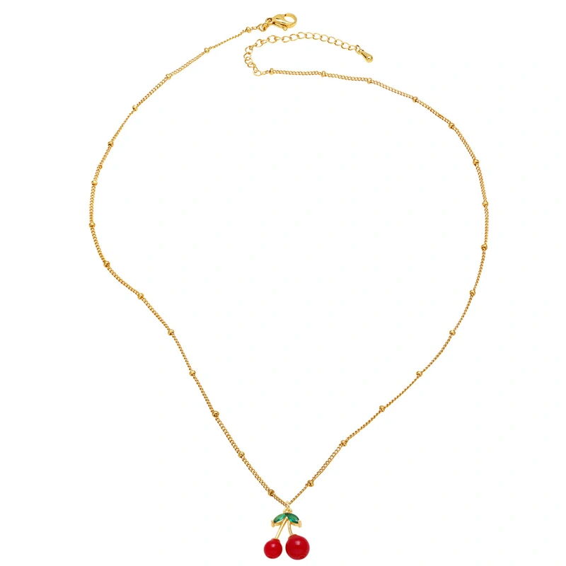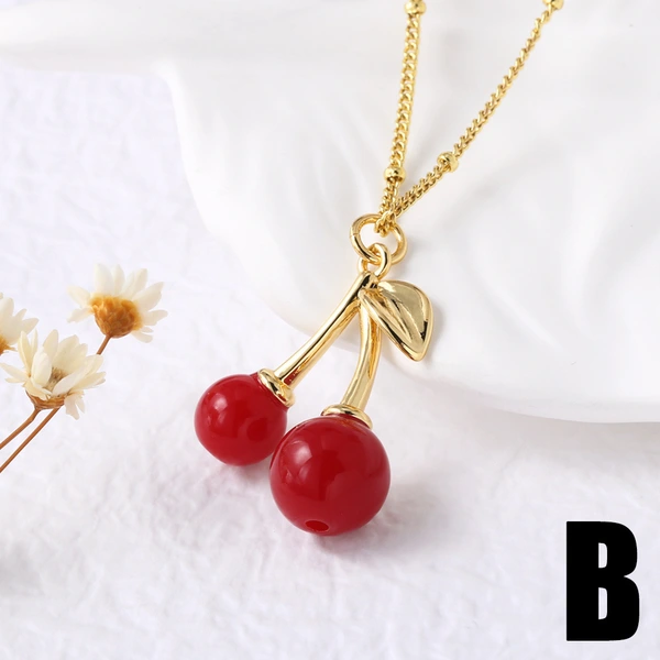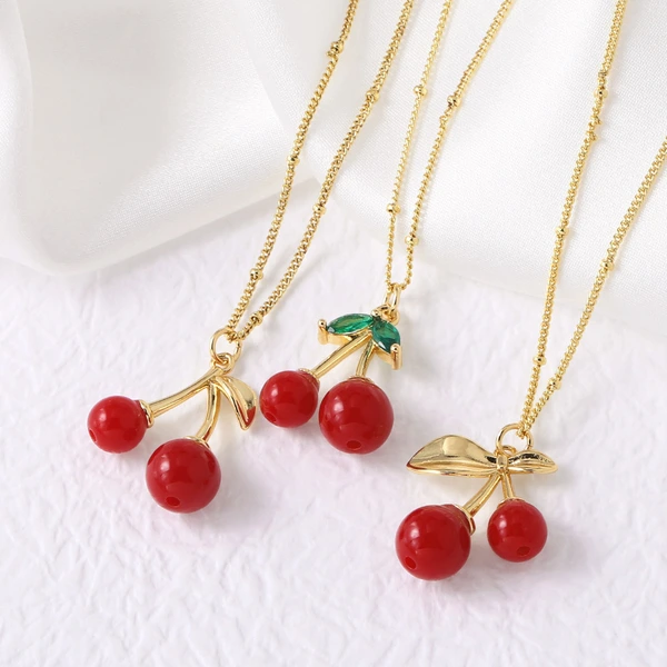 Collar con colgante de cereza y fruta, diseño de nicho, muy popular como joyería, cadena de clavícula para mujer nkb750