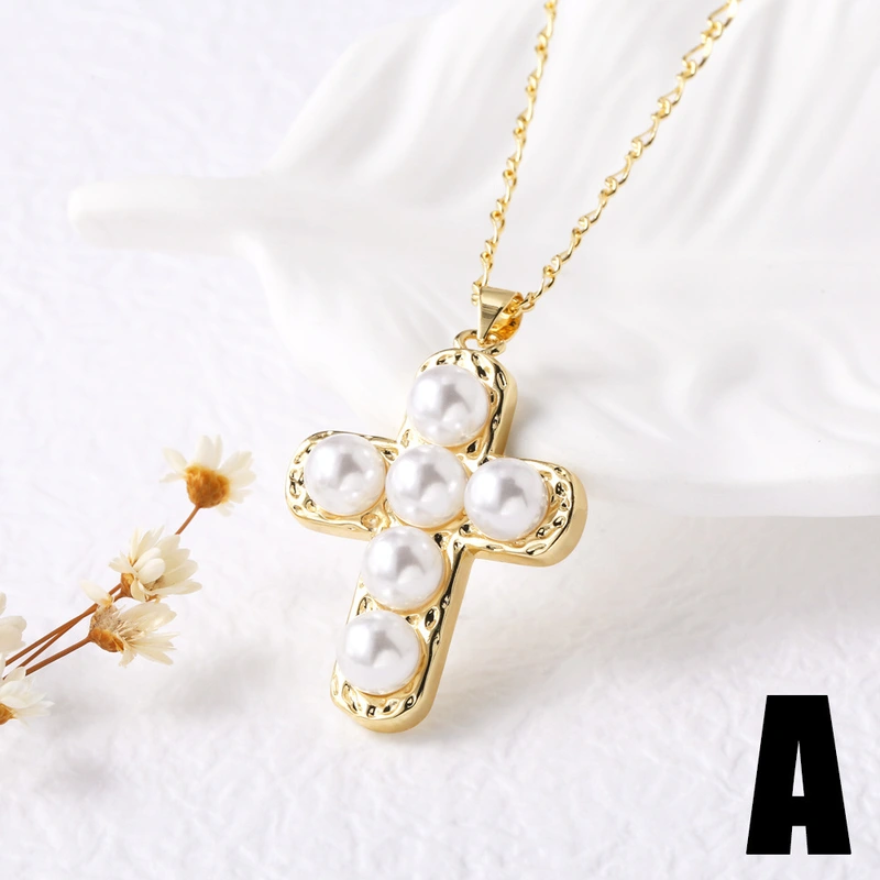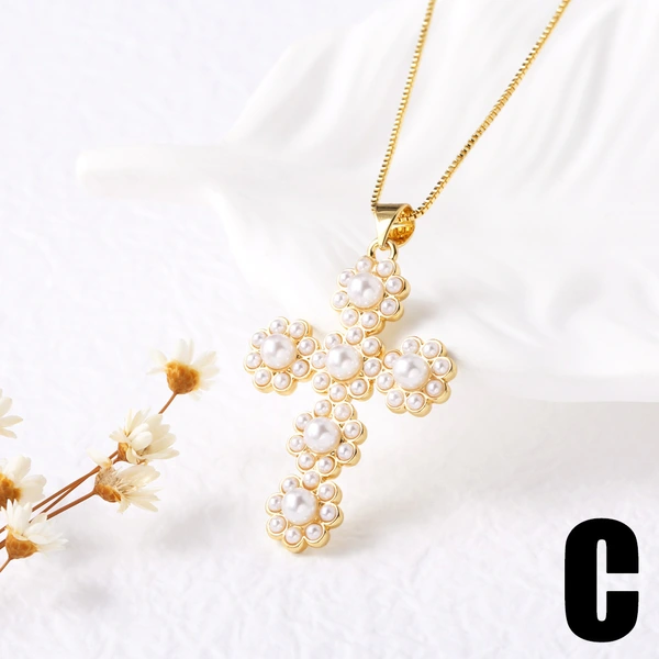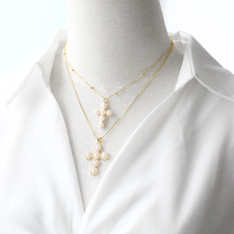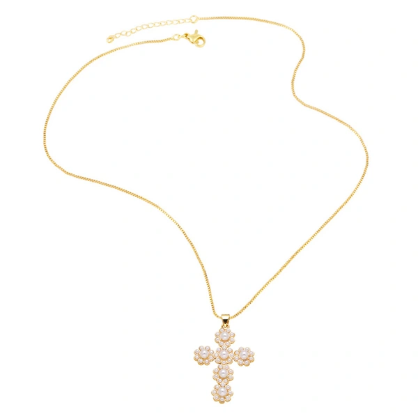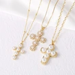 Collar con colgante de circonita con incrustaciones de cruz de perla como joyería, cadena de clavícula nka079necklace