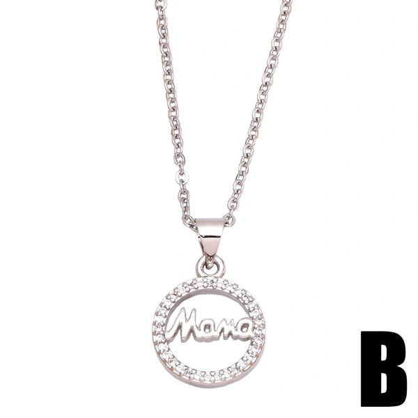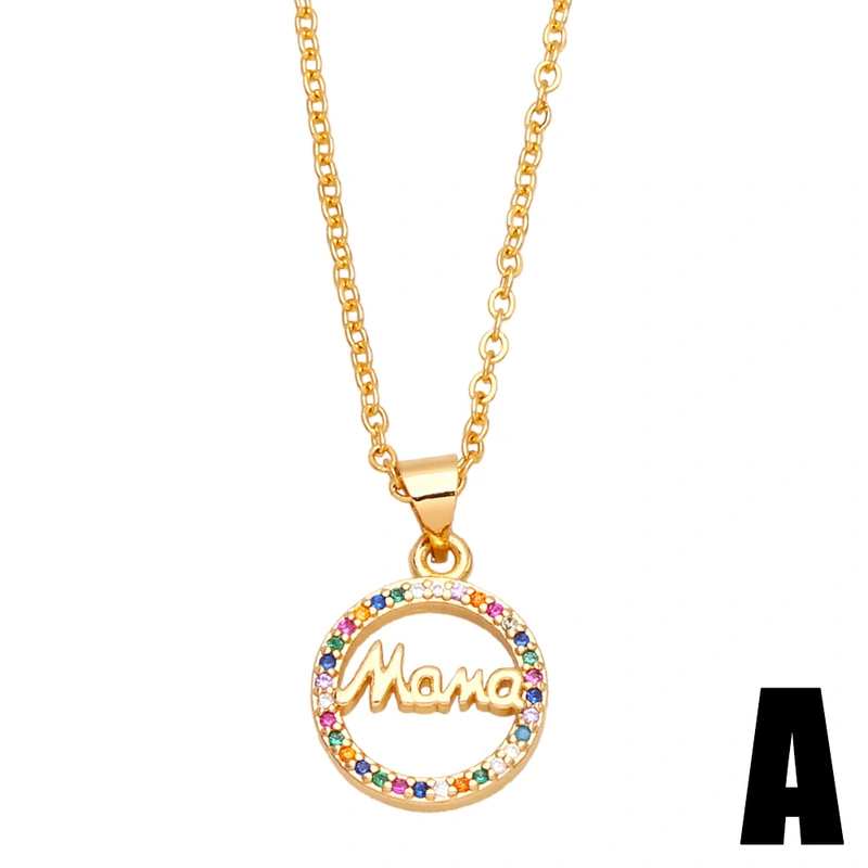 Collar con colgante de circonita de color con personalidad europea y americana, diseño sencillo con letras "Mamá" para el Día de la Madre, venta al por mayor, nkb175