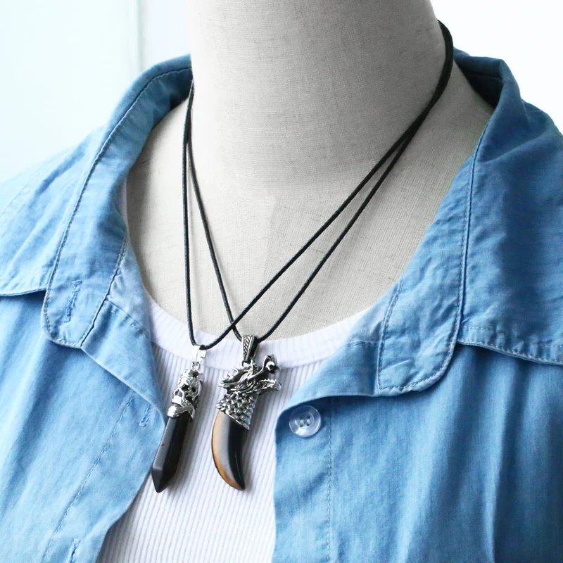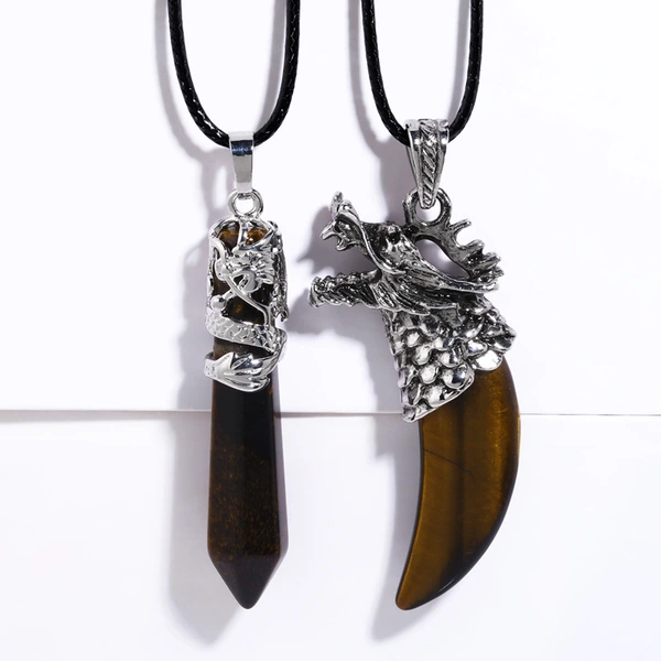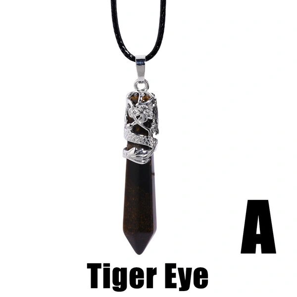 Collar con colgante de columna hexagonal de piedra de ojo de tigre de estilo retro europeo y americano, estilo punk hip hop, collar de diente de dragón para hombre nkb745