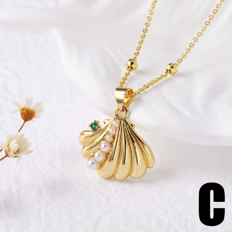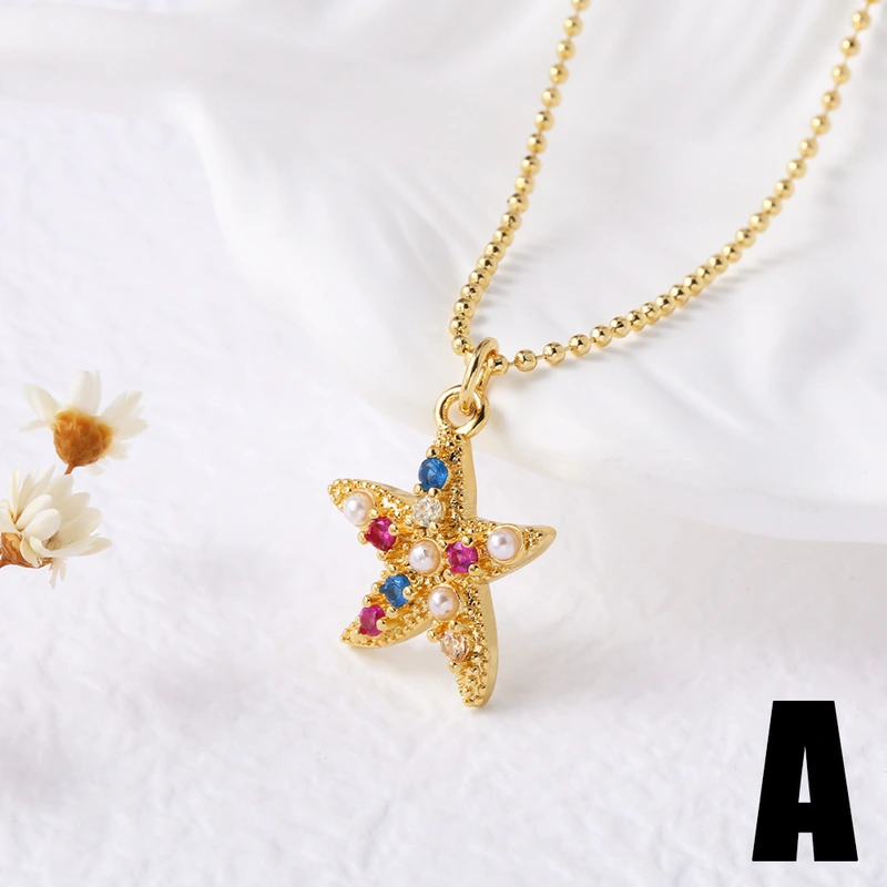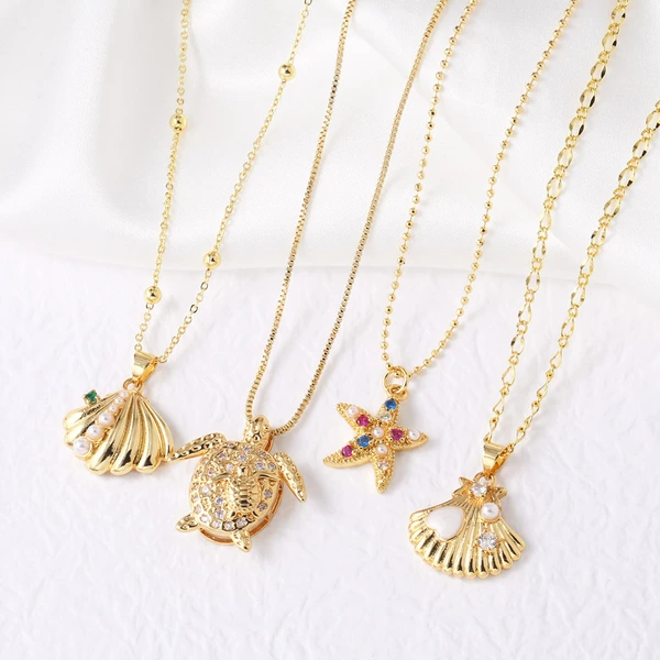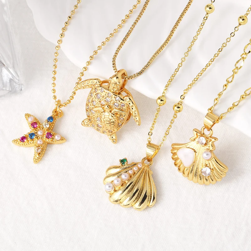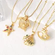 Collar con colgante de concha de perla y estrella de mar, diseño oceánico, cadena de clavícula, nkt83