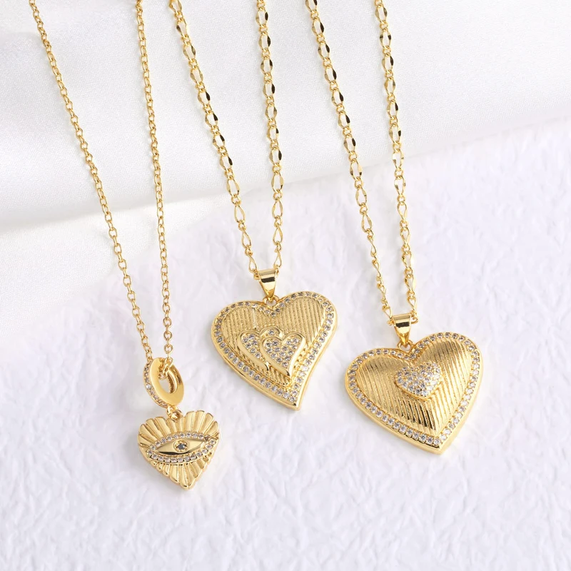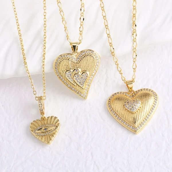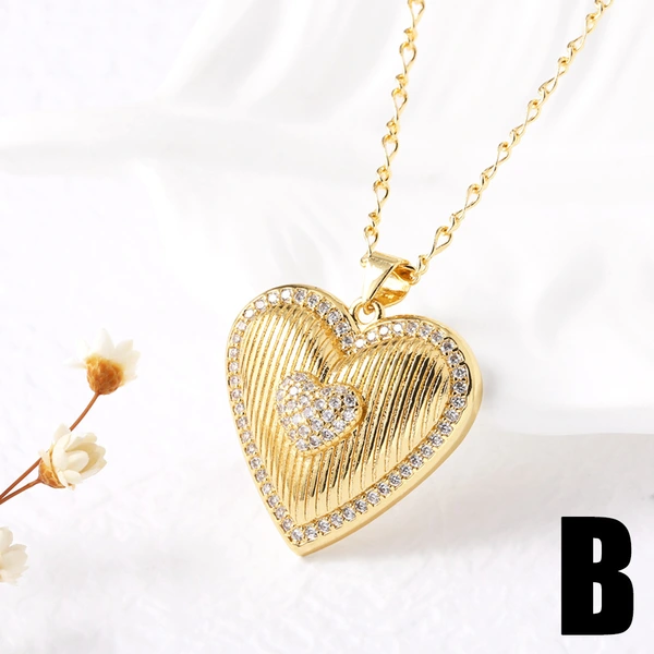 Collar con colgante de corazón de amor chapado en cobre de oro de 18 quilates para mujer, NKB324