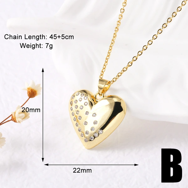 Collar con colgante de corazón de amor chapado en oro auténtico, joyería de gran venta, nkb841