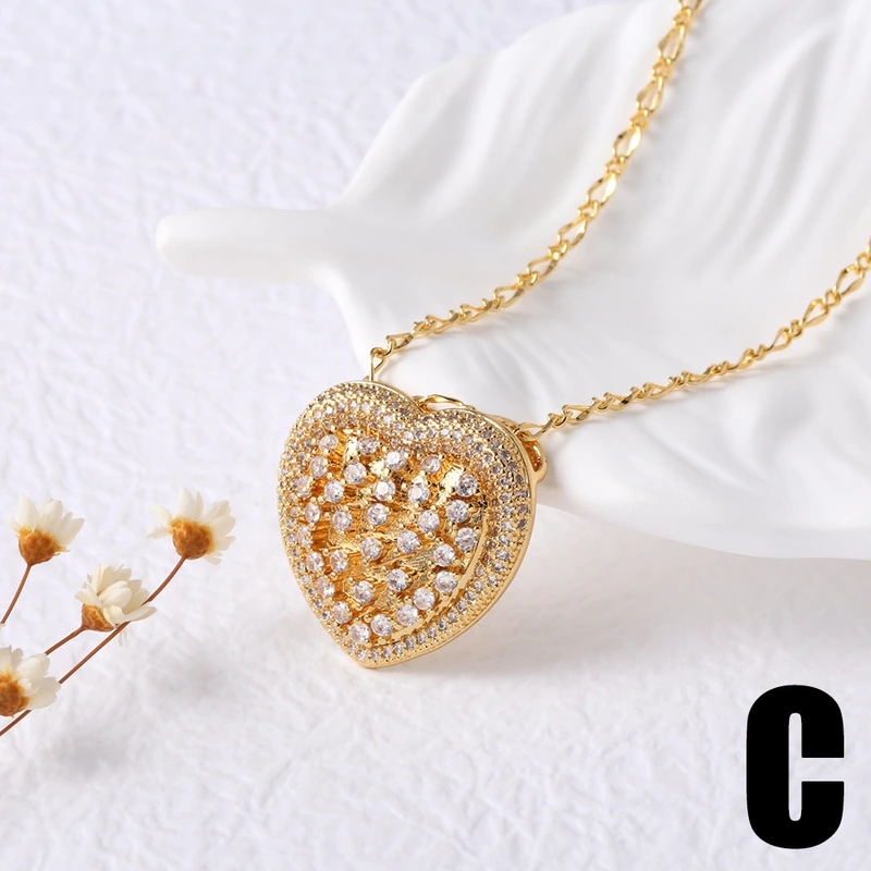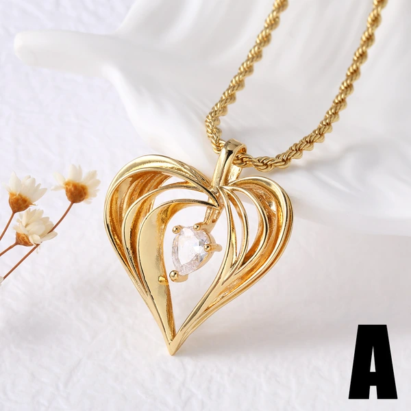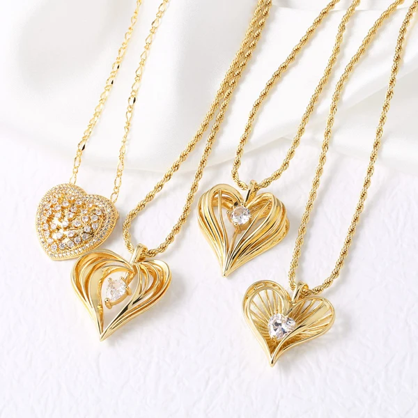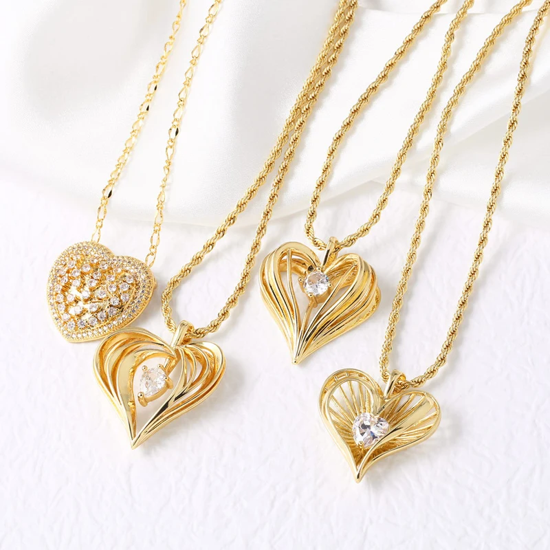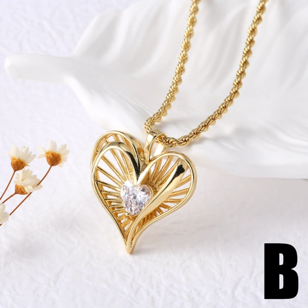 Collar con colgante de corazón de amor con incrustaciones de circonitas, chapado en cobre y cadena de clavícula de oro de 18 quilates (NKB588)
