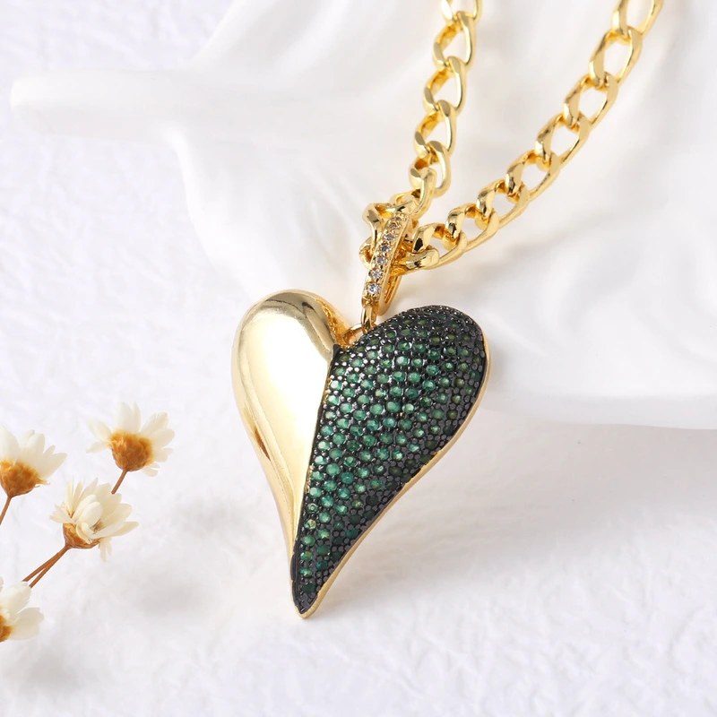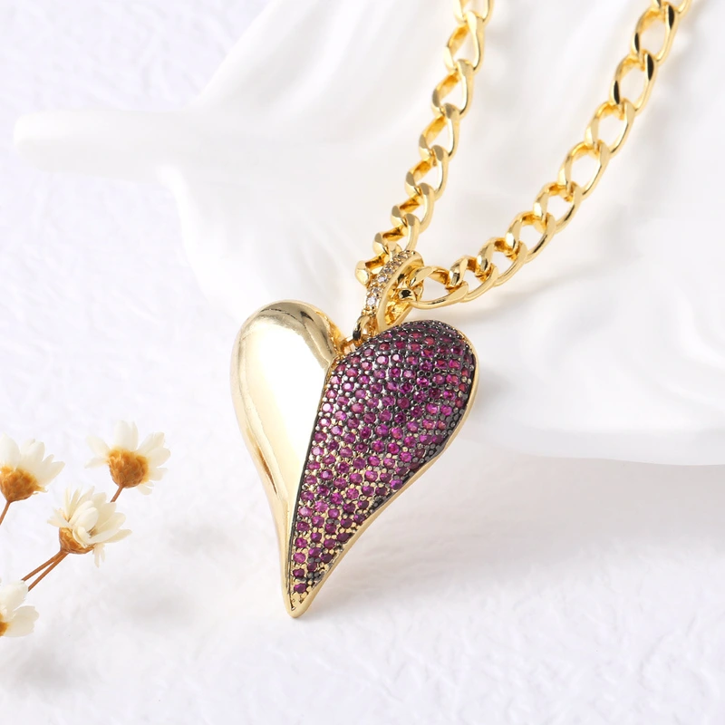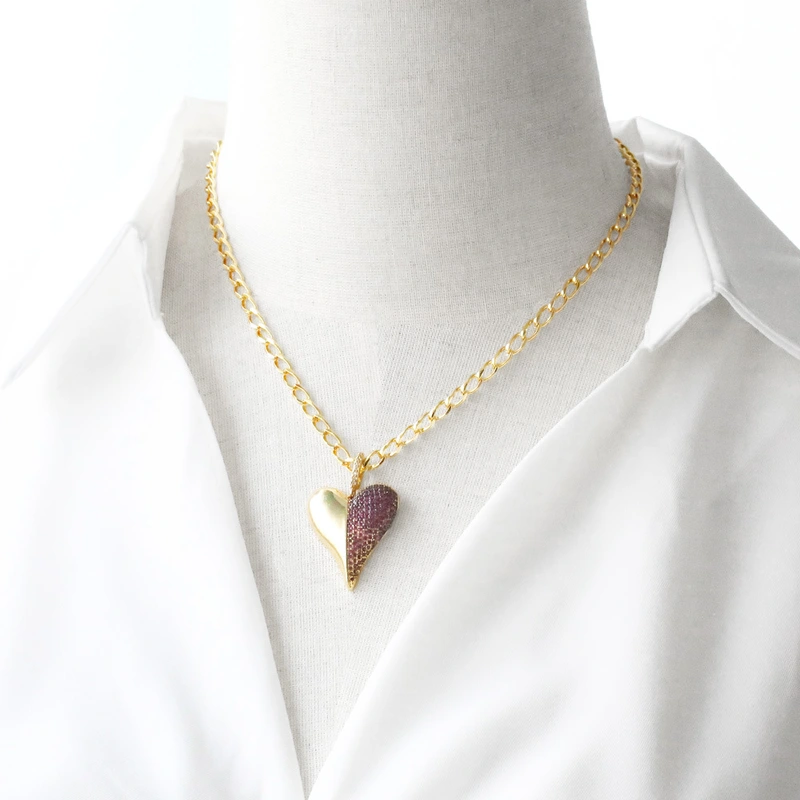 Collar con colgante de corazón de amor, estilo europeo y americano, chapado en cobre, cadena de clavícula de oro de 18 quilates, NKB479