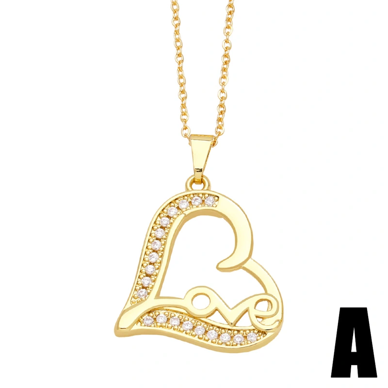 Collar con colgante de 26 letras de amor con incrustaciones de circonitas, estilo nuevo, NKB281
