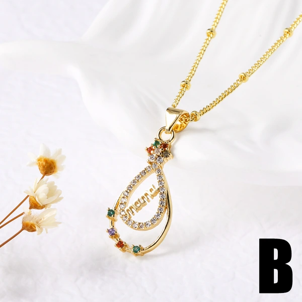 Collar con colgante de circonitas de colores, 26 letras en inglés, chapado en oro, cadena de clavícula, NKU83