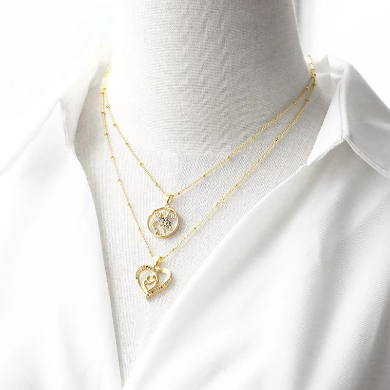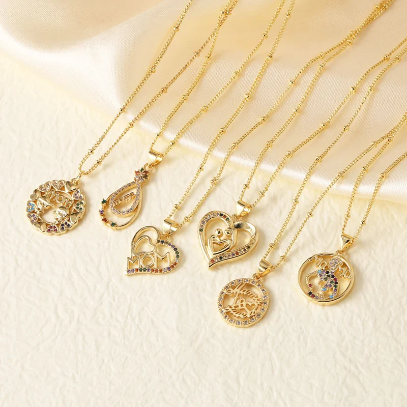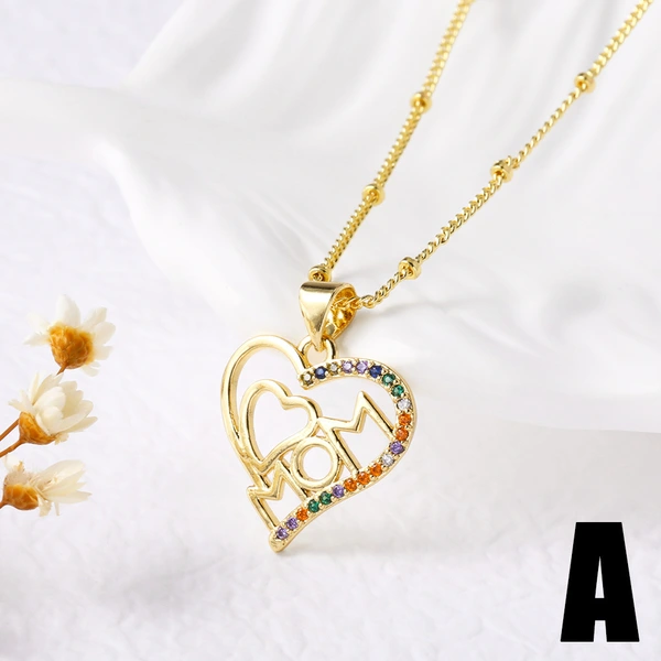 Collar con colgante de corazón de amor para el Día de la Madre, chapado en oro de cobre, muy popular en Europa y Estados Unidos, con cadena de clavícula nkz79.