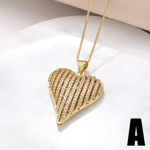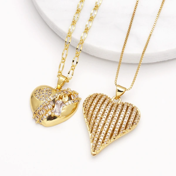 Collar con colgante de corazón de amor para mujer, gran oferta, chapado en cobre, oro auténtico, cadena de clavícula con circonitas NKB074