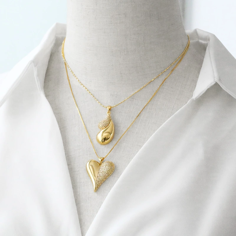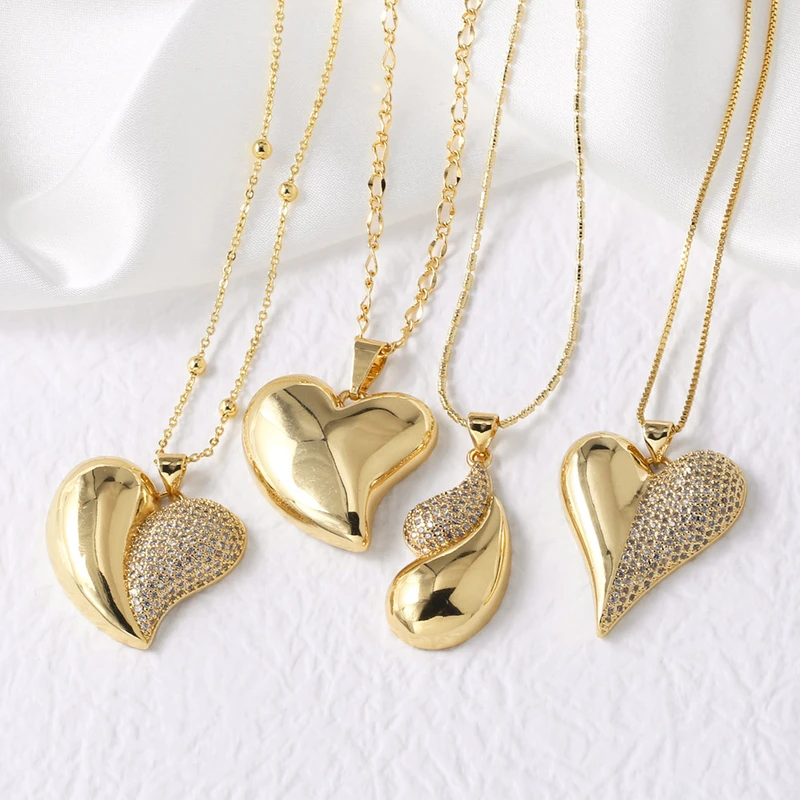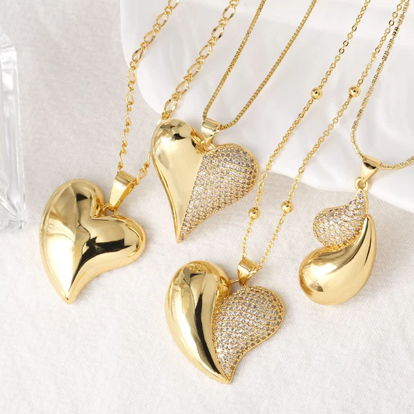 Collar con colgante de corazón de melocotón para mujer, chapado en oro, versátil, cadena de clavícula, NKU71, muy vendido.