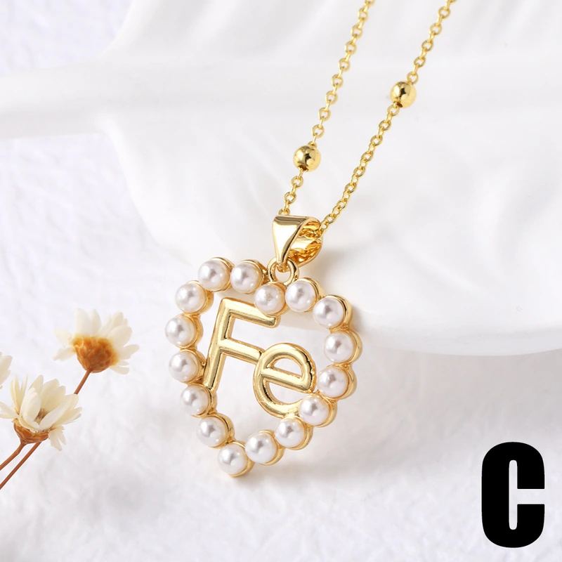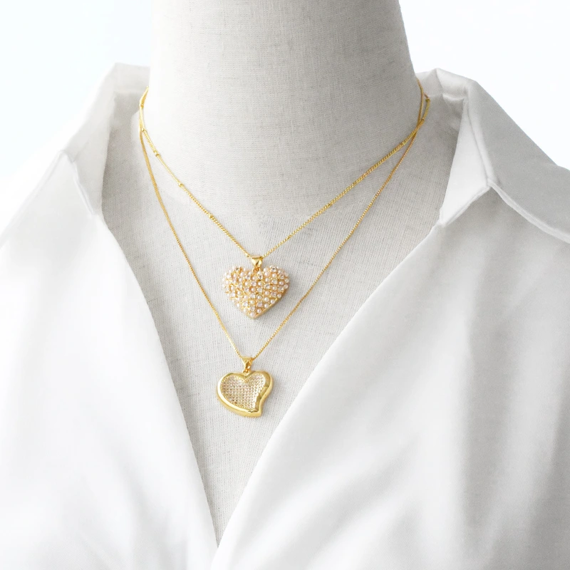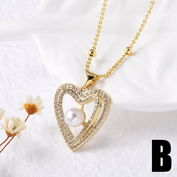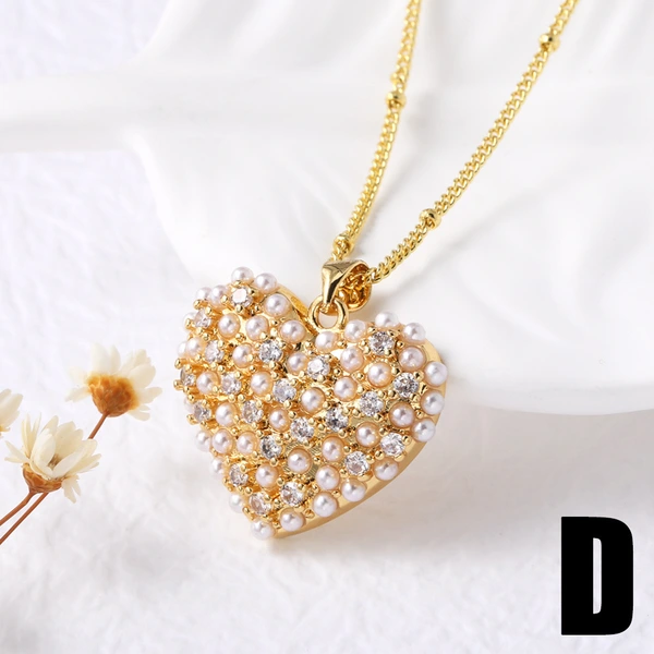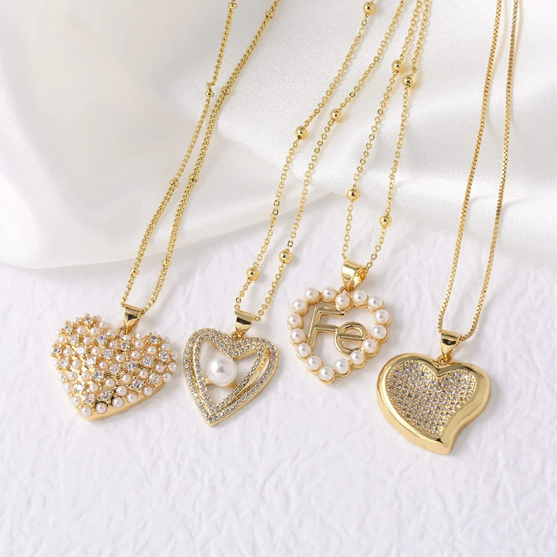 Collar con colgante de corazón de perla para San Valentín, versátil, chapado en oro, para mujer, NKN24
