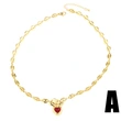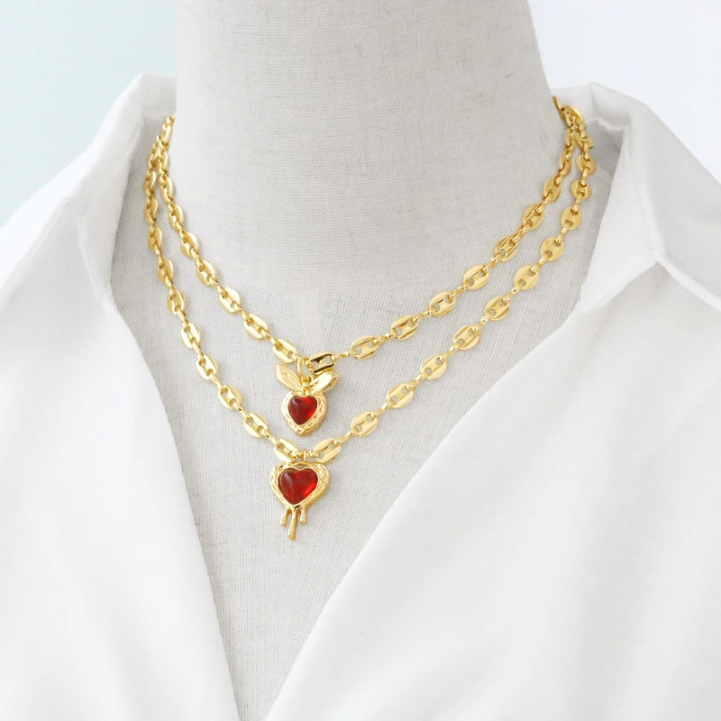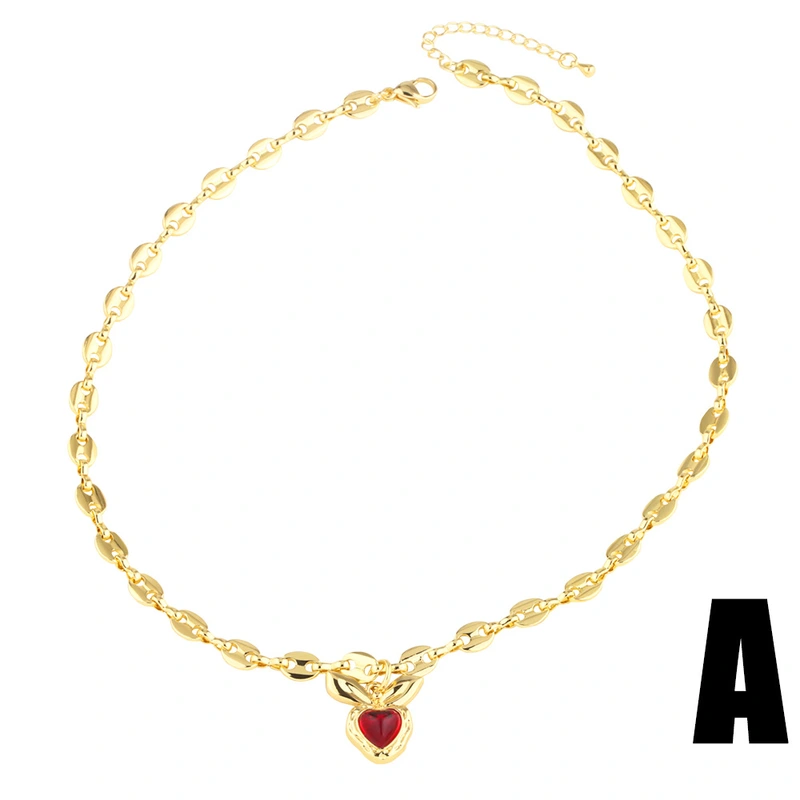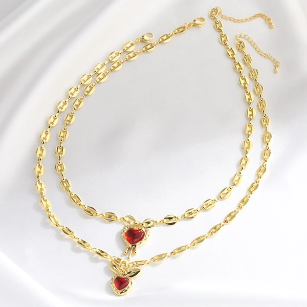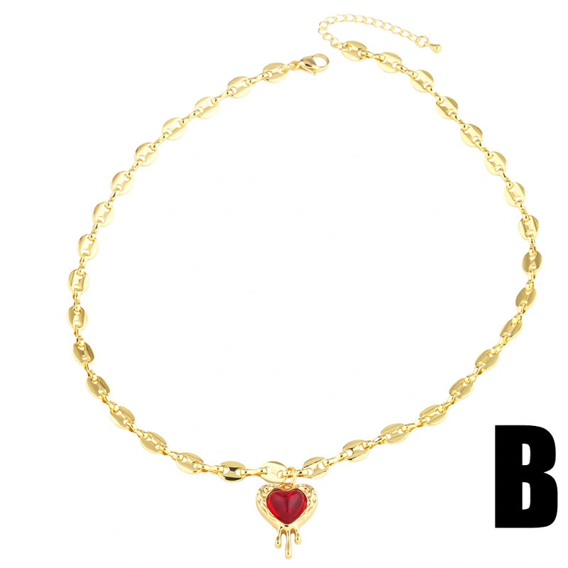 Collar con colgante de corazón de rubí chapado en oro de 18 quilates y cobre, estilo europeo y americano, cadena de clavícula para mujer nkb648