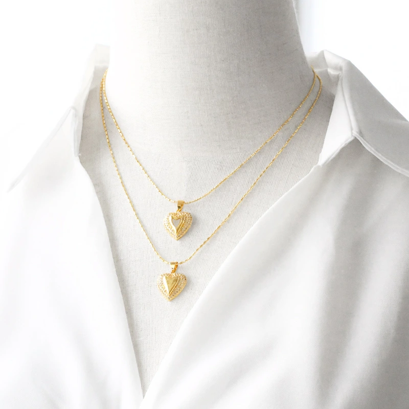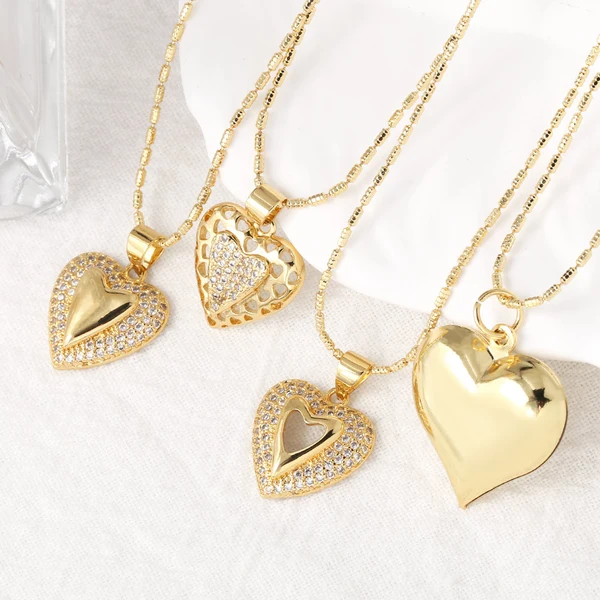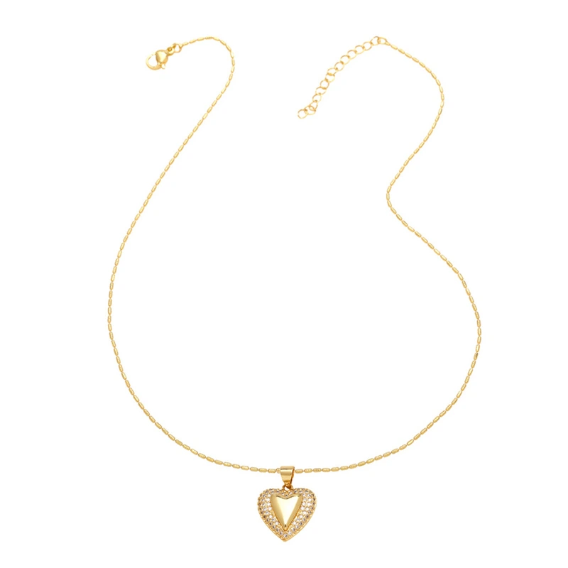 Collar con colgante de corazón liso para San Valentín, cadena de clavícula chapada en oro para mujer, NKB863