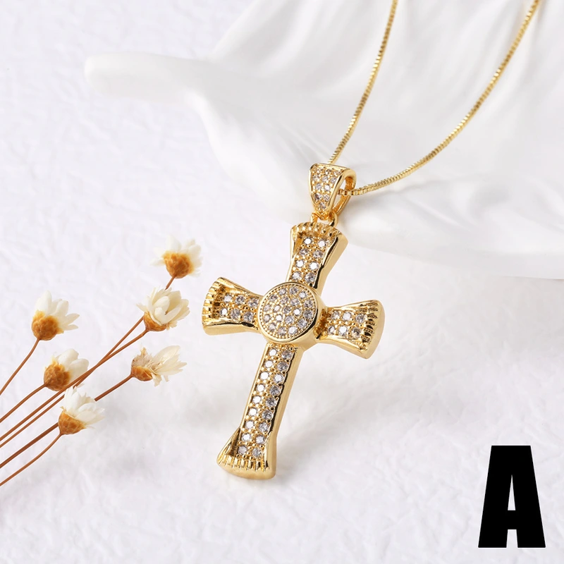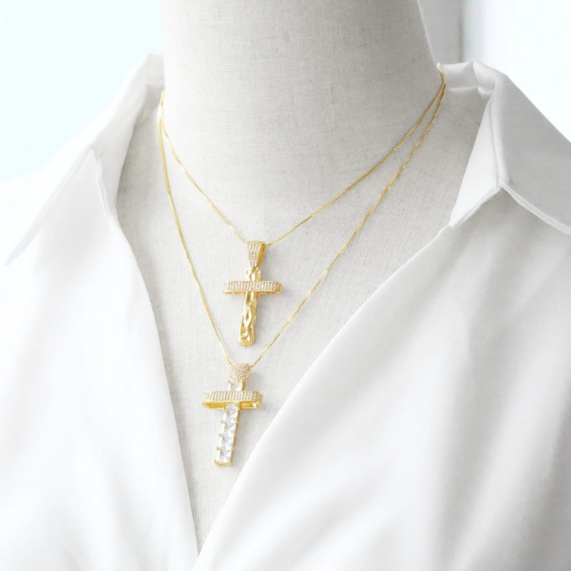 Collar con colgante de cruz de circonita estilo hip hop, cadena de clavícula, nkp83, muy vendido como joyería