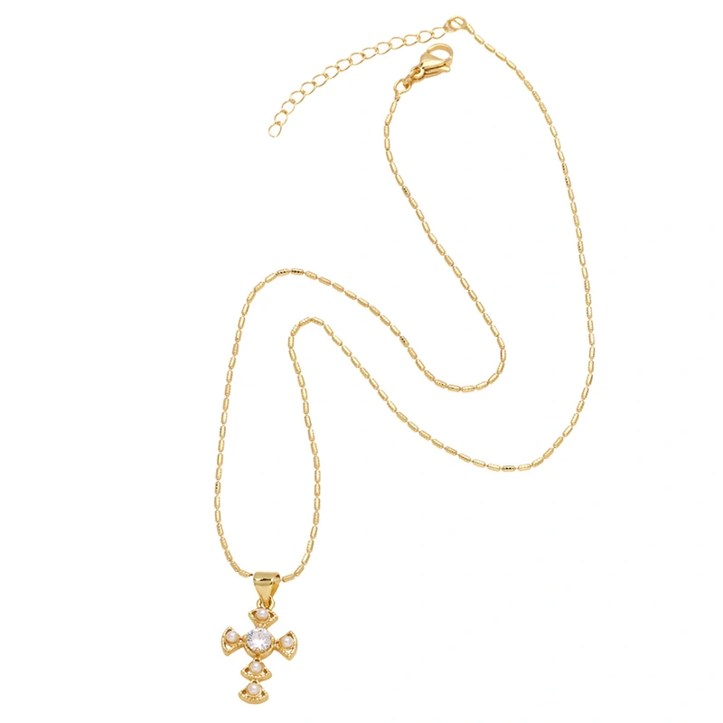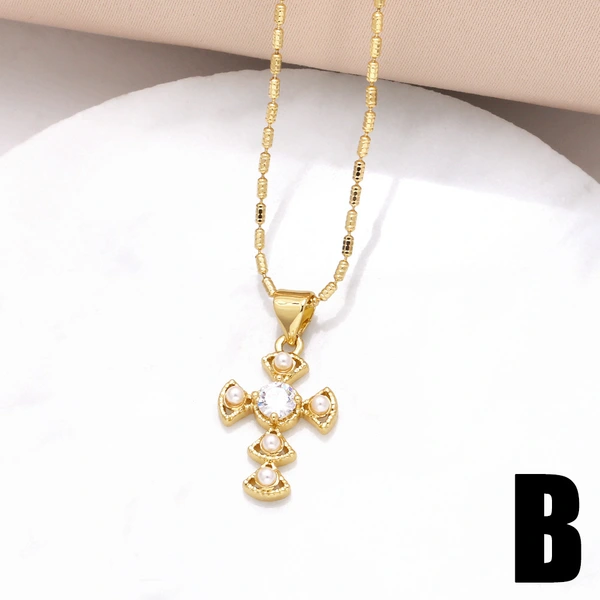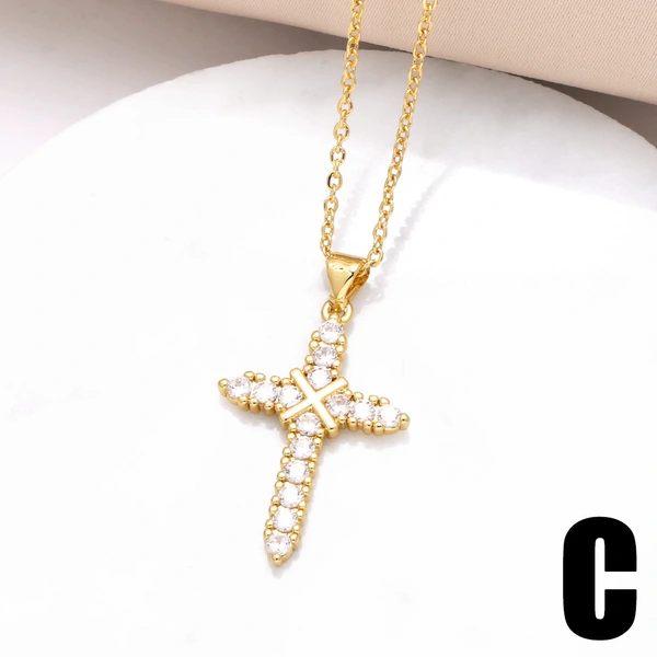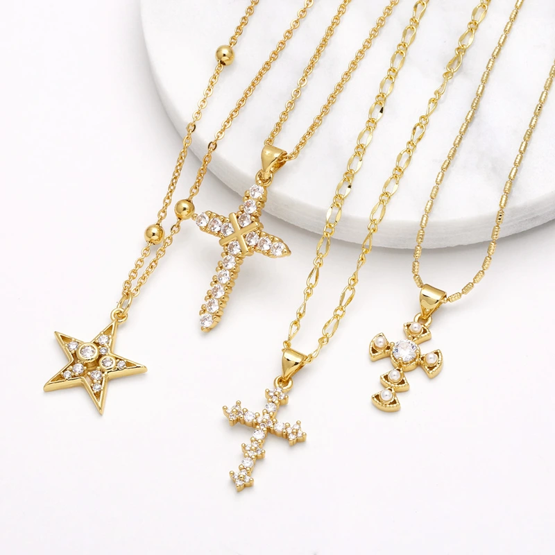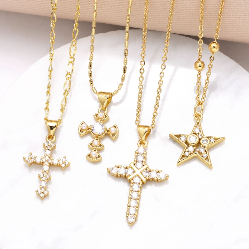 Collar con colgante de cruz para mujer, de alta gama, con circonitas cúbicas y estrella de cinco puntas, NKB292