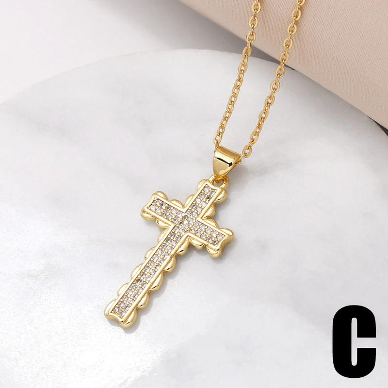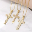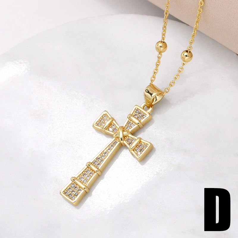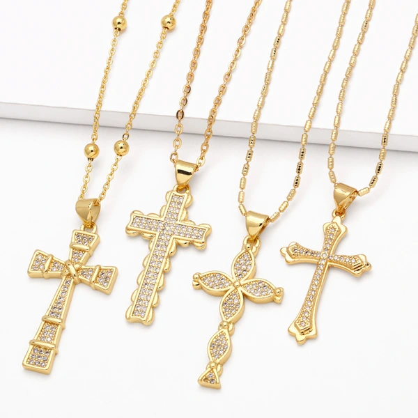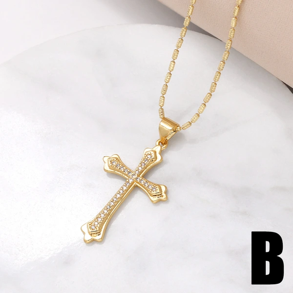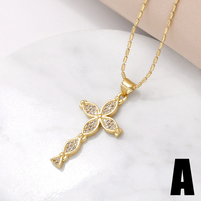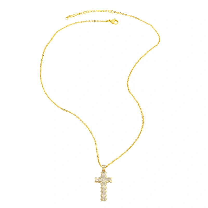 Collar con colgante de cruz para mujer, joyería de gran venta, chapado en cobre, con incrustaciones de oro real y circonita, cadena de clavícula NKV18