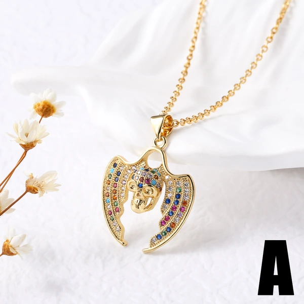 Collar con colgante de circonitas de colores, 26 letras en inglés, chapado en oro, cadena de clavícula, NKU83