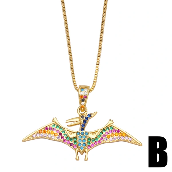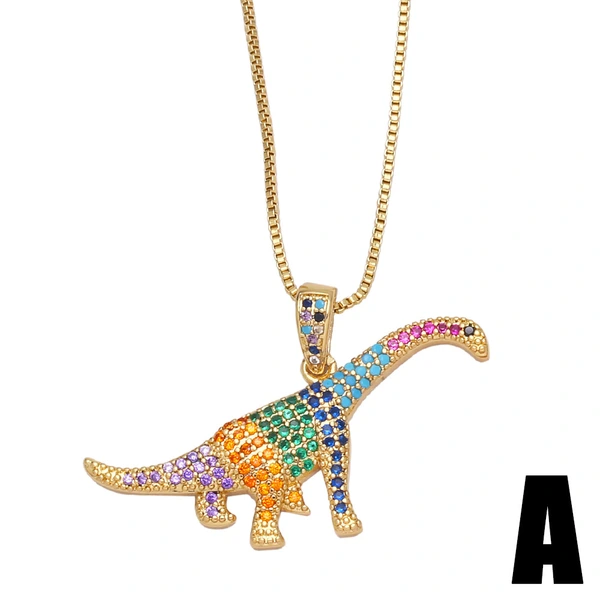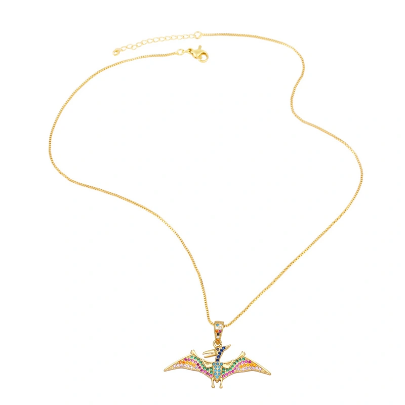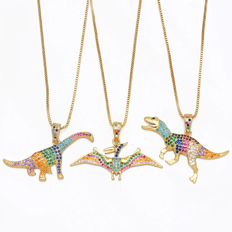 Collar con colgante de dinosaurio y diseño de nicho de joyería europea y americana, con personalidad femenina y microincrustaciones de circonitas de colores NKB103
