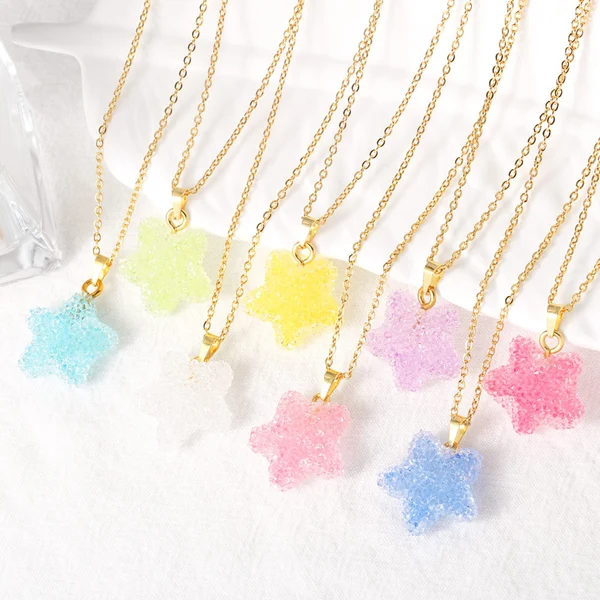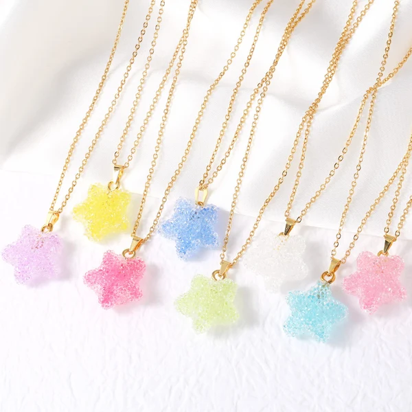 Collar con colgante de estrella de cinco puntas, colorido y muy popular, chapado en oro, para mujer, estilo clavícula, nkw64