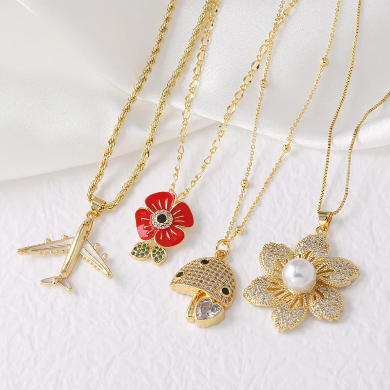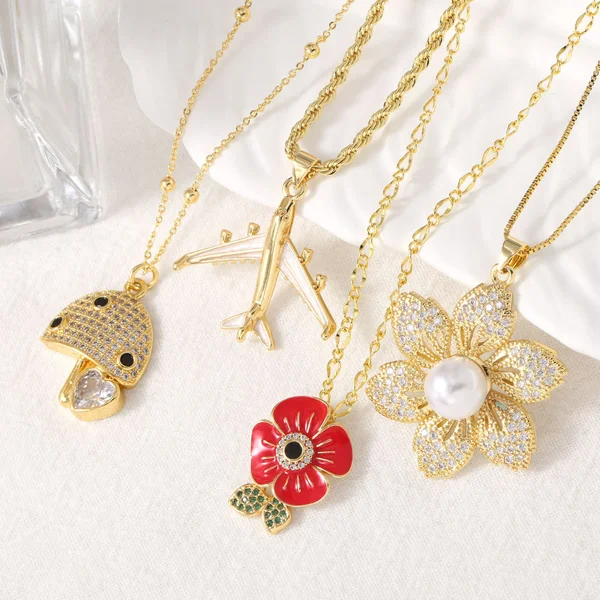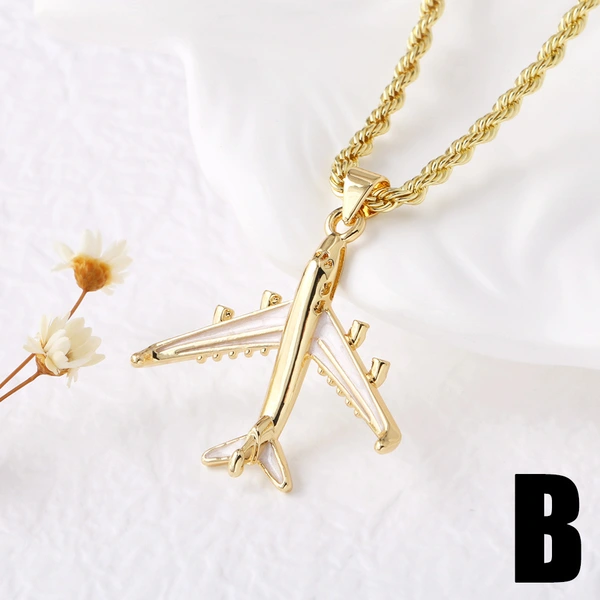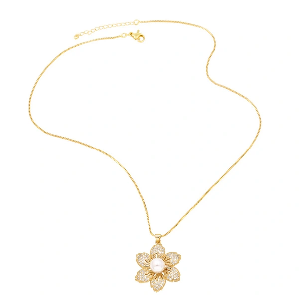 Collar con colgante de flor de avión chapado en oro de 18 quilates con circonitas, estilo europeo y americano, cadena de clavícula NKU70.