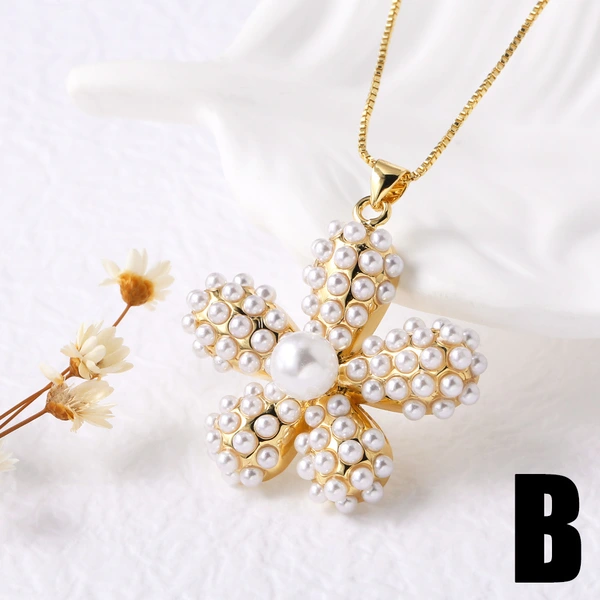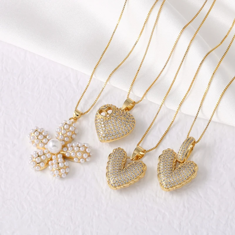 Collar con colgante de flor de perla y corazón de amor, cadena de clavícula nkb365