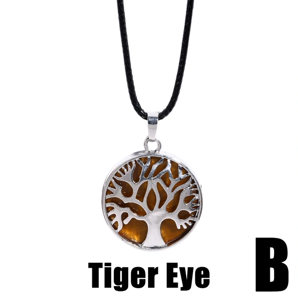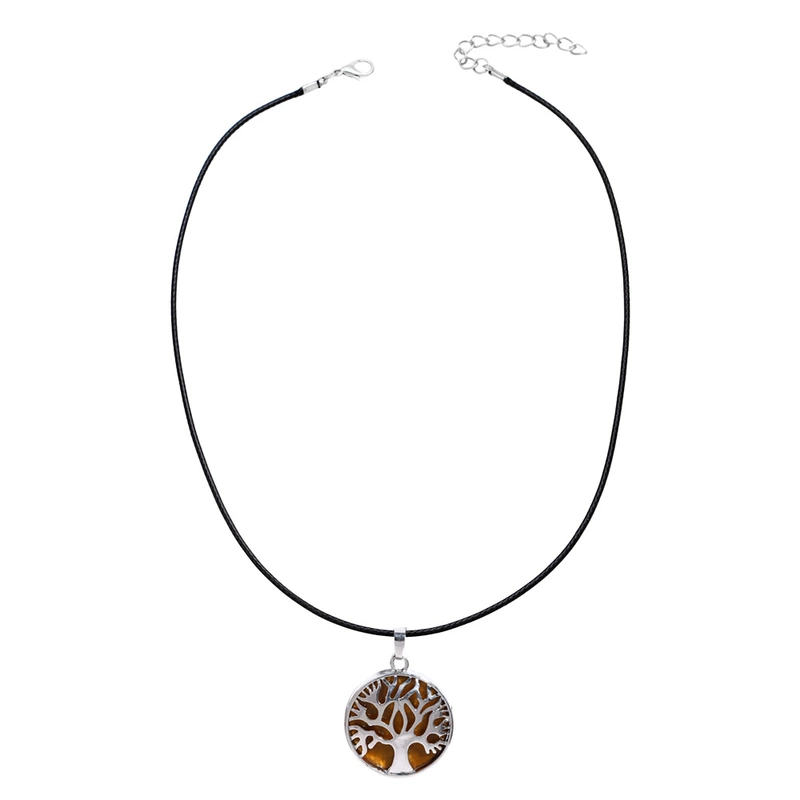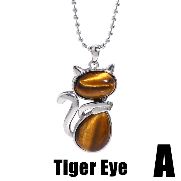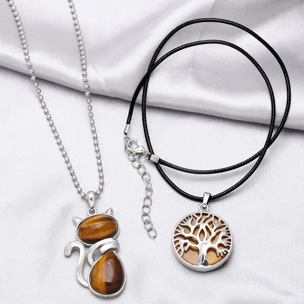 Collar con colgante de gatito y piedra de ojo de tigre retro, diseño de nicho, cadena de clavícula con árbol de la vida, NKB702