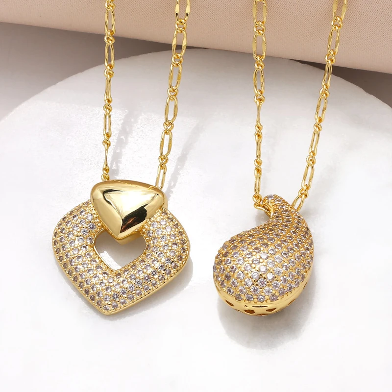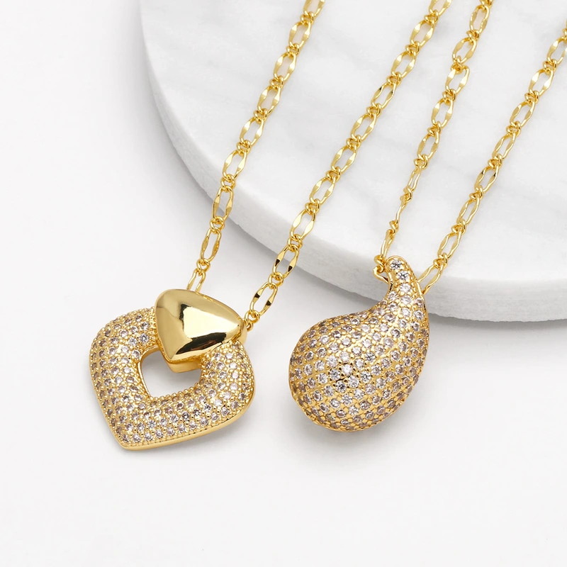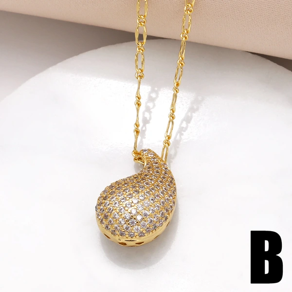 Collar con colgante de gota de agua, chapado en oro, con incrustaciones de circonita, cadena de clavícula de amor, NKB628