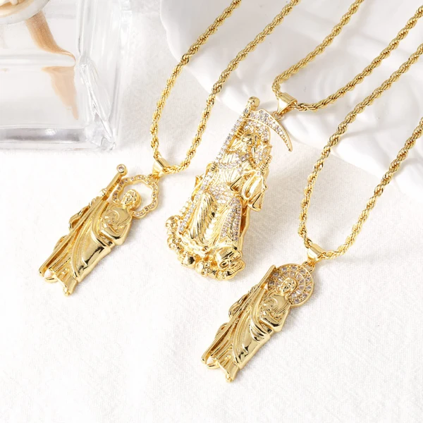 Collar con colgante de la Estatua de la Muerte de la Virgen María, chapado en cobre, estilo retro, cadena de clavícula, NKB598
