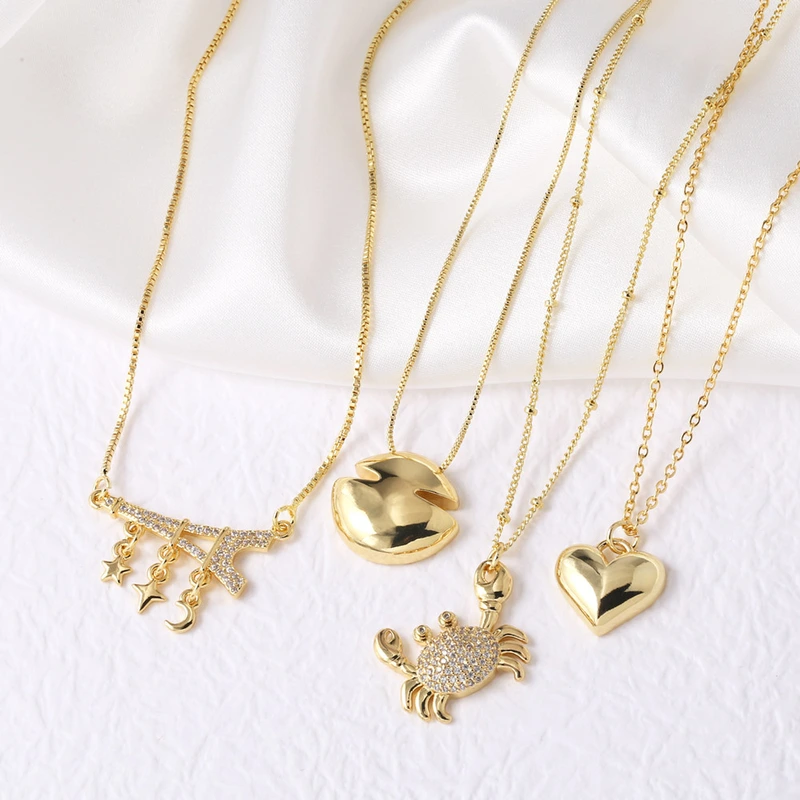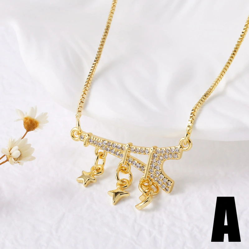 Collar con 26 letras en inglés para mujer, chapado en cobre y oro auténtico con incrustaciones de circonitas, cadena de clavícula, nky42