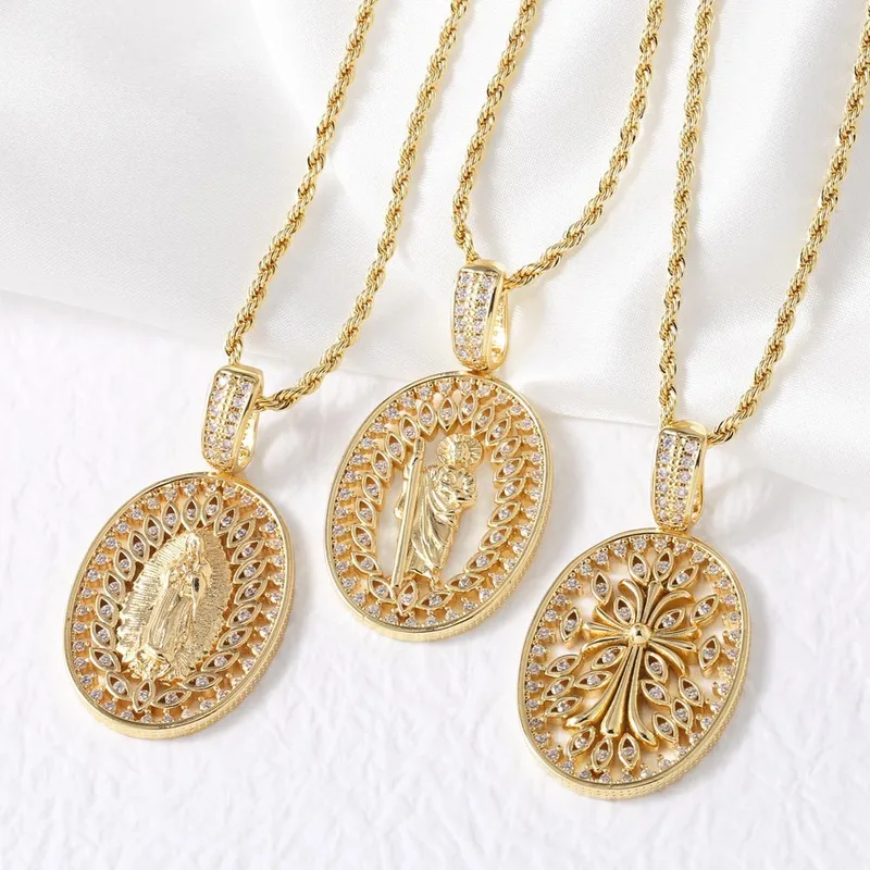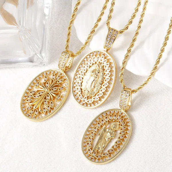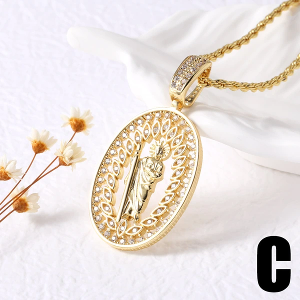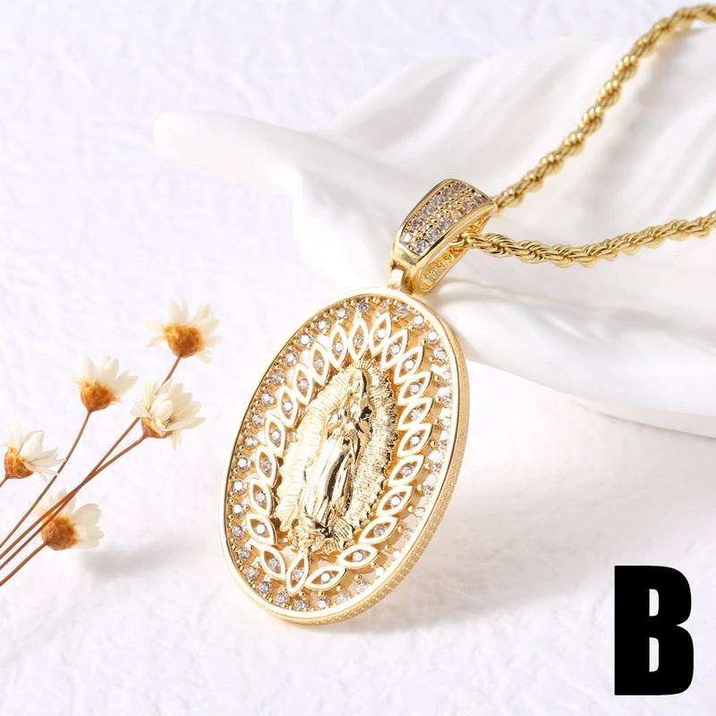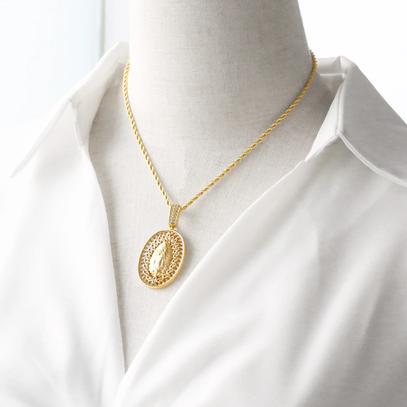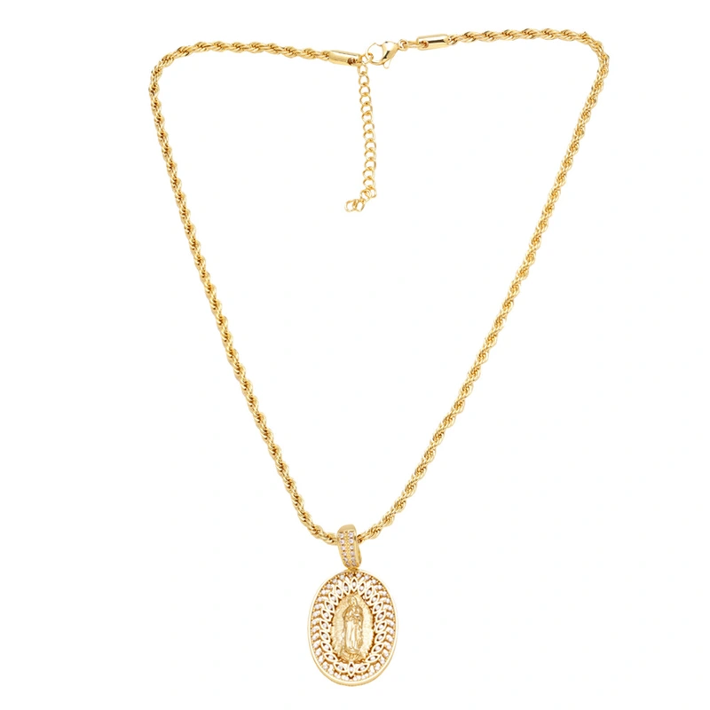 Collar con colgante de la Virgen María, popular entre europeos y americanos, chapado en cobre, cadena de clavícula en oro de 18 quilates (NKB801).