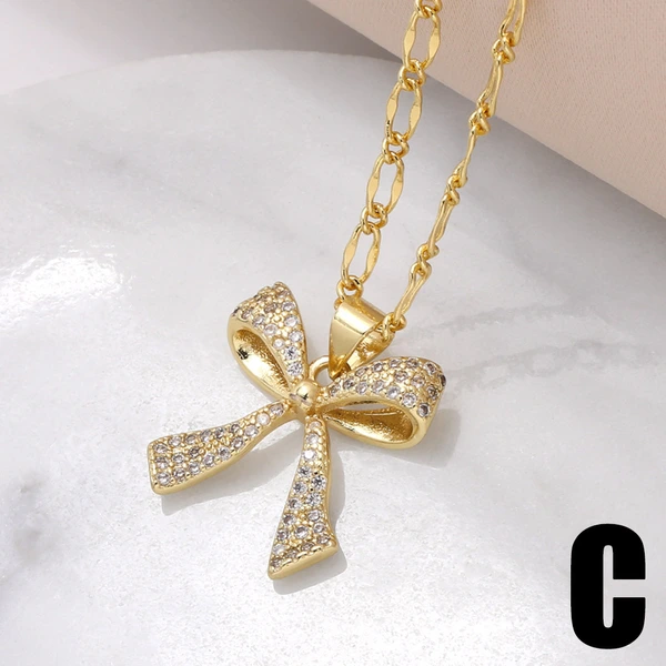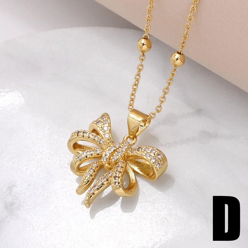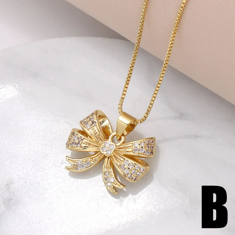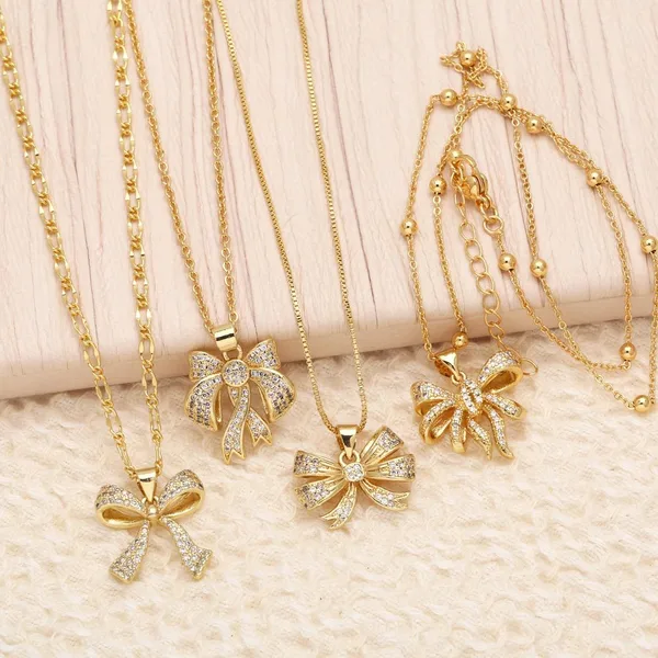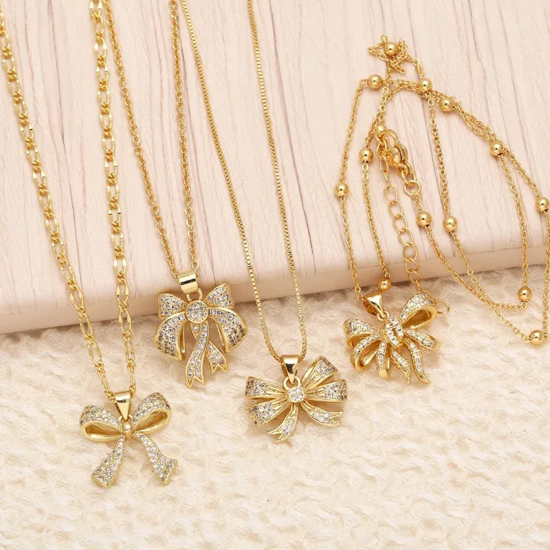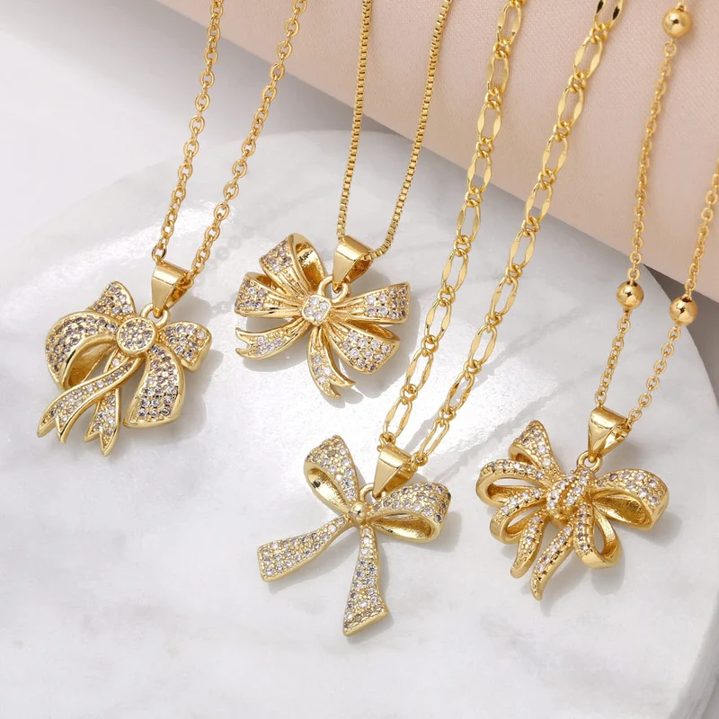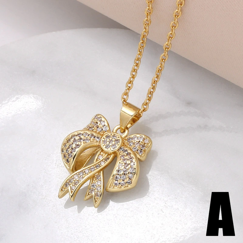 Collar con colgante de lazo europeo y americano para mujer, chapado en oro con incrustaciones de circonitas, ideal como joyería para el Día de la Madre, NKU19