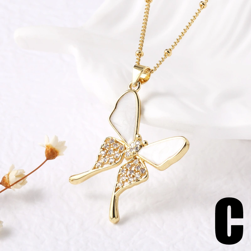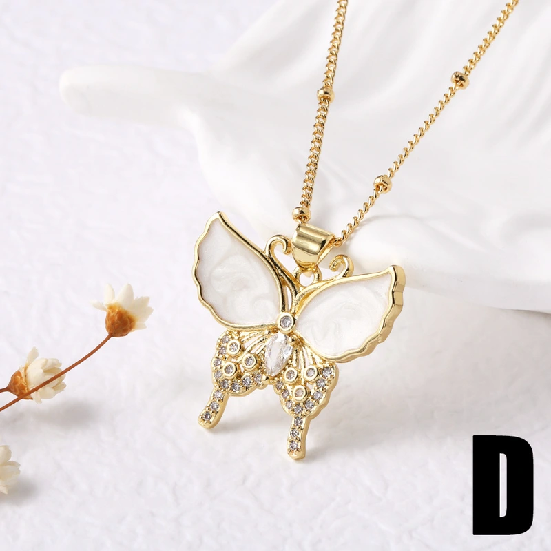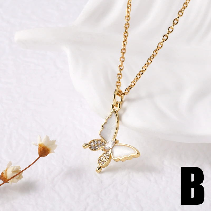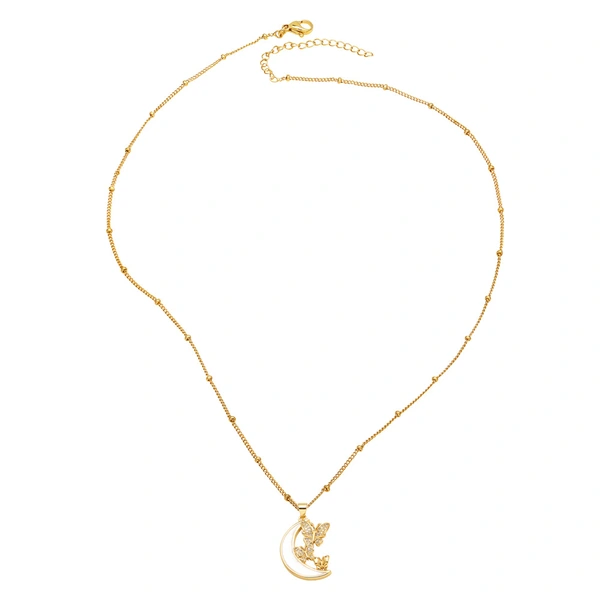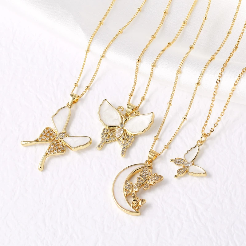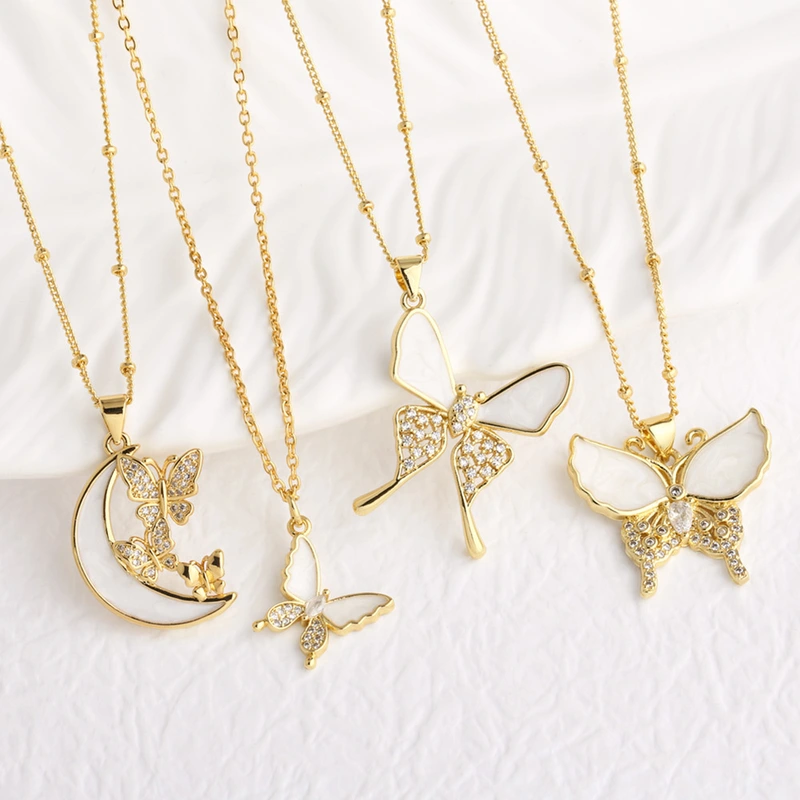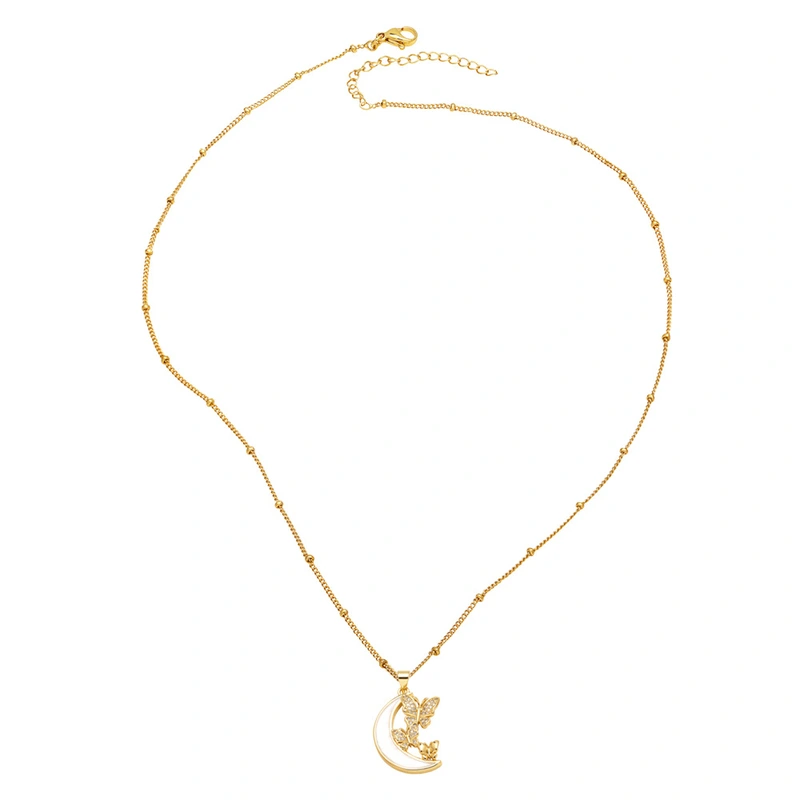 Collar con colgante de mariposa y luna con incrustaciones de circonita, joyería muy vendida, cadena de clavícula para mujer nkp89