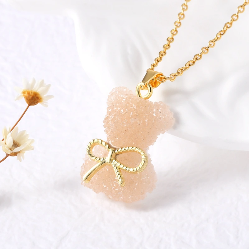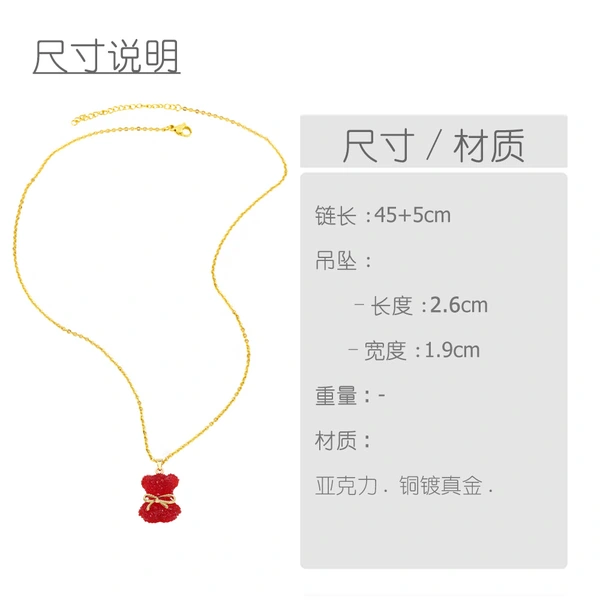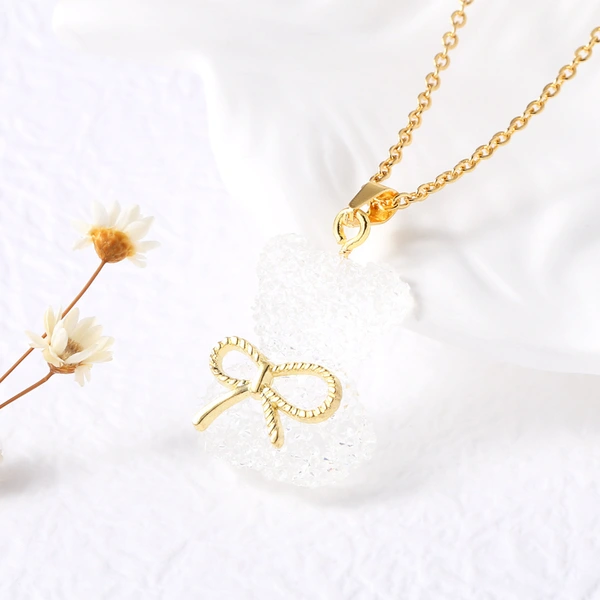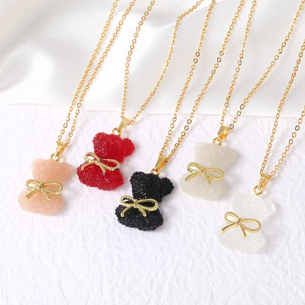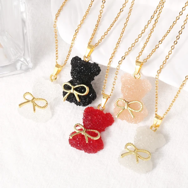 Collar con colgante de oso de color lazo, joyería muy vendida, cadena de clavícula chapada en oro para mujer nkb470
