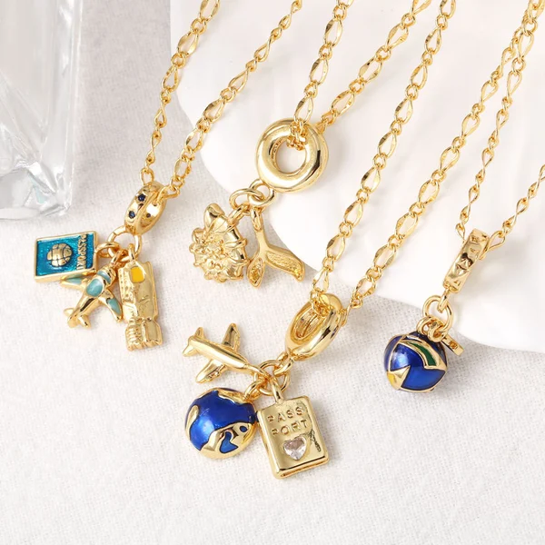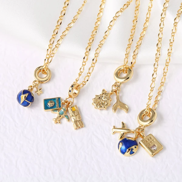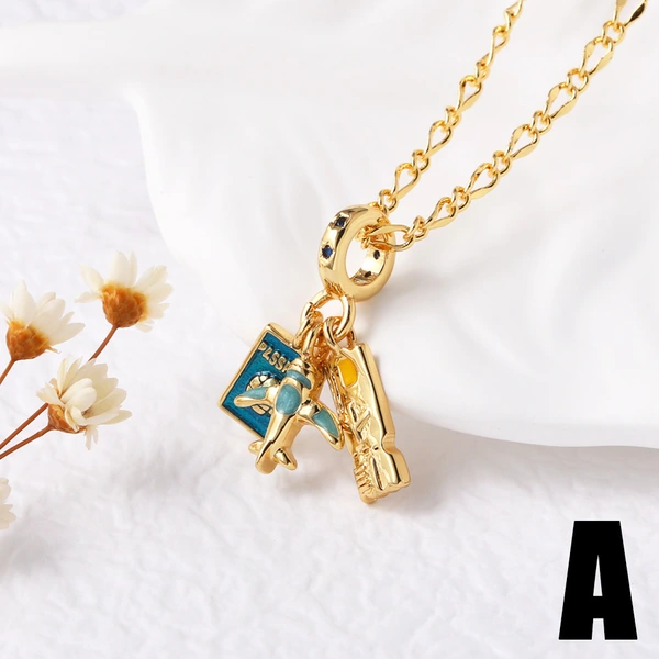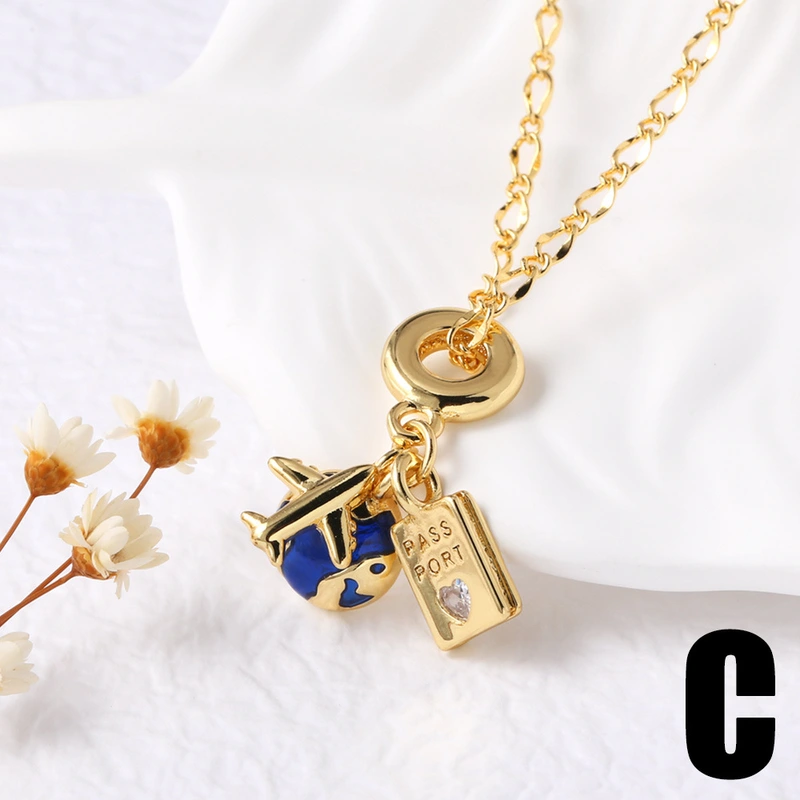 Collar con colgante de pasaporte de avión, estilo europeo y americano, chapado en oro, para mujer, cadena de clavícula nkb360