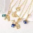 Collar con colgante de circonitas de colores, 26 letras en inglés, chapado en oro, cadena de clavícula, NKU83