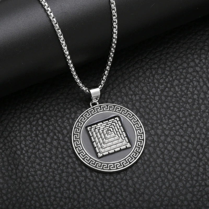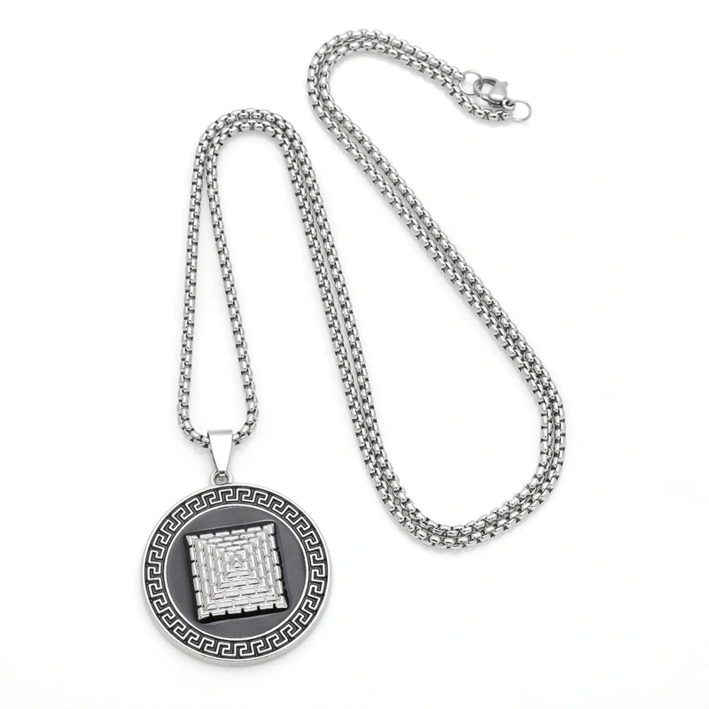 Collar con colgante de pirámide de tarjeta redonda, estilo punk retro, estilo hip hop, estilo cadena de suéter NKA061, joyería europea y americana