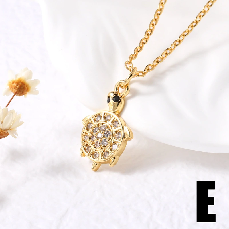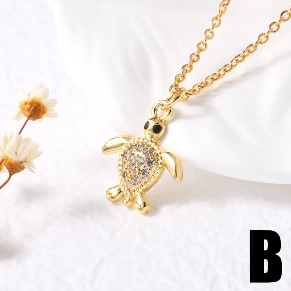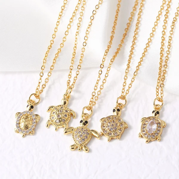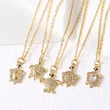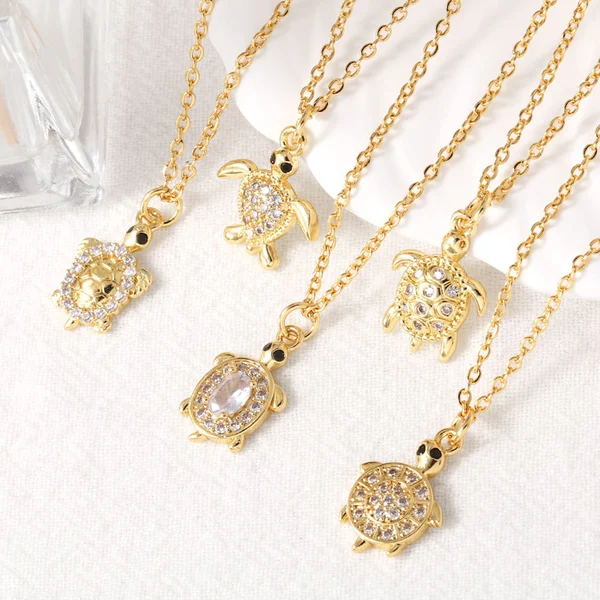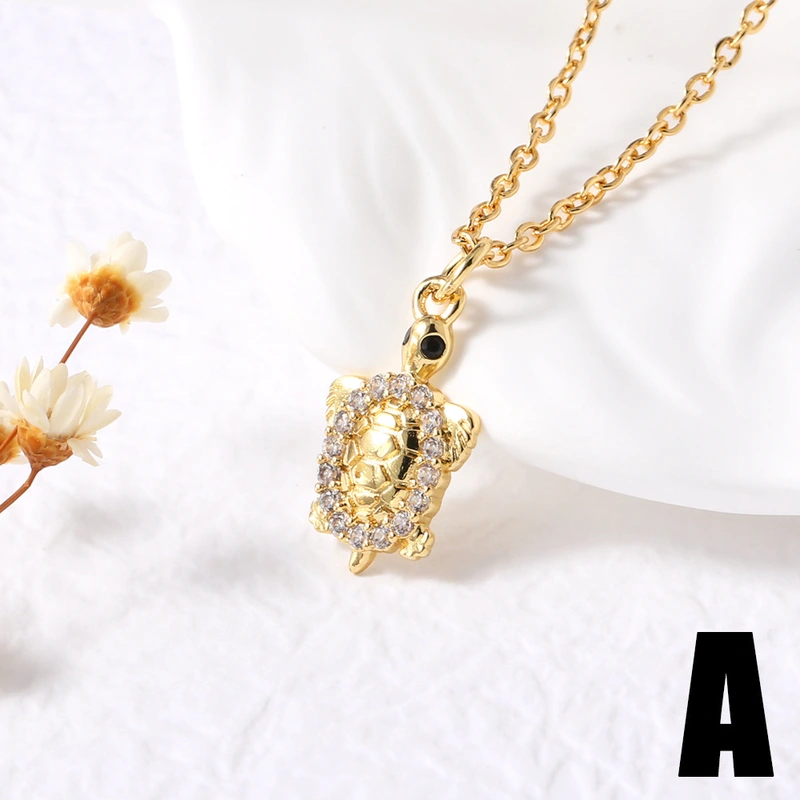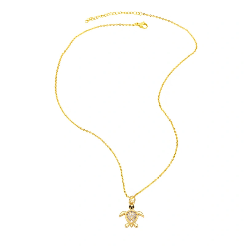 Collar con colgante de tortuga pequeña, estilo europeo y americano, chapado en cobre, con incrustaciones de oro de 18 quilates y circonitas, para mujer, NKP24