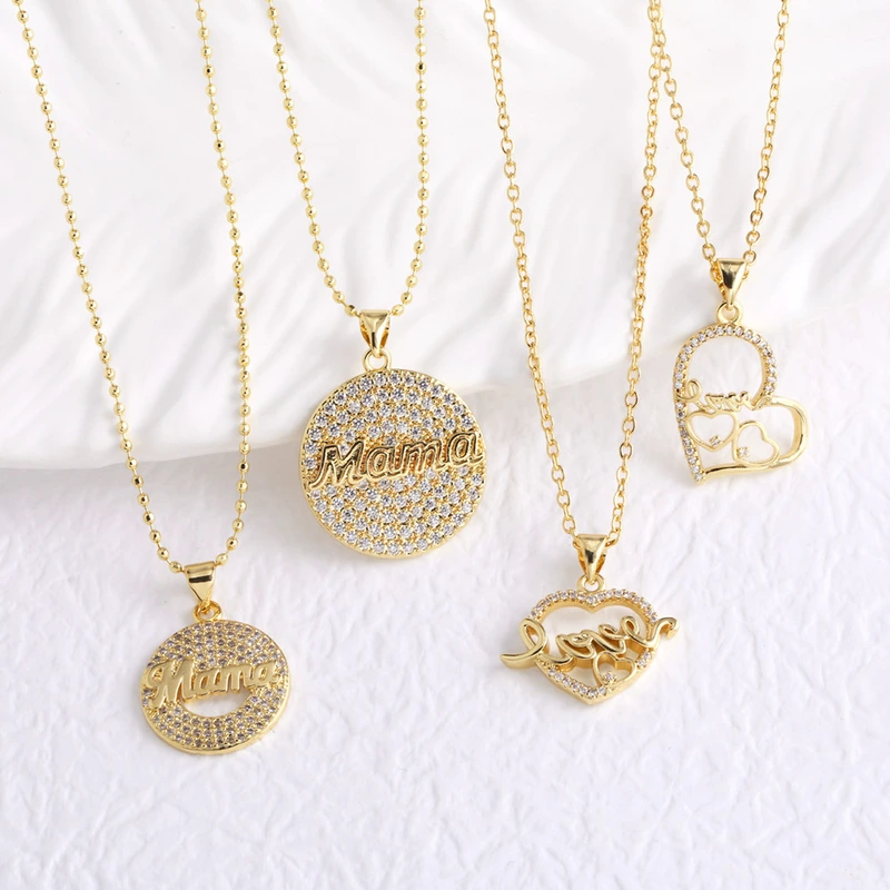 Collar con colgante "Love Mama", joyería para el Día de la Madre, chapado en oro, cadena de clavícula para mujer, NKB298
