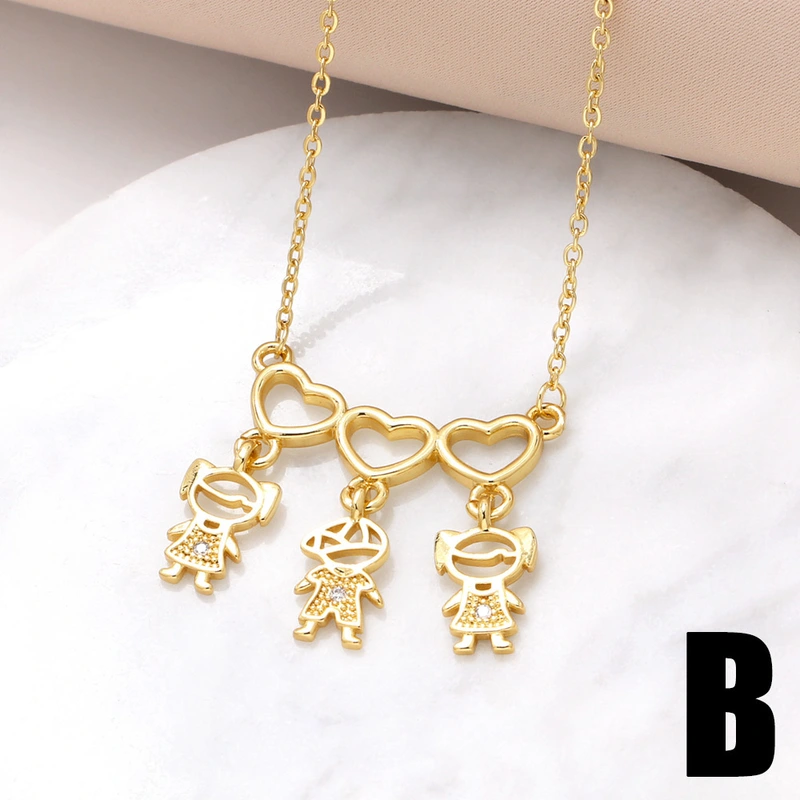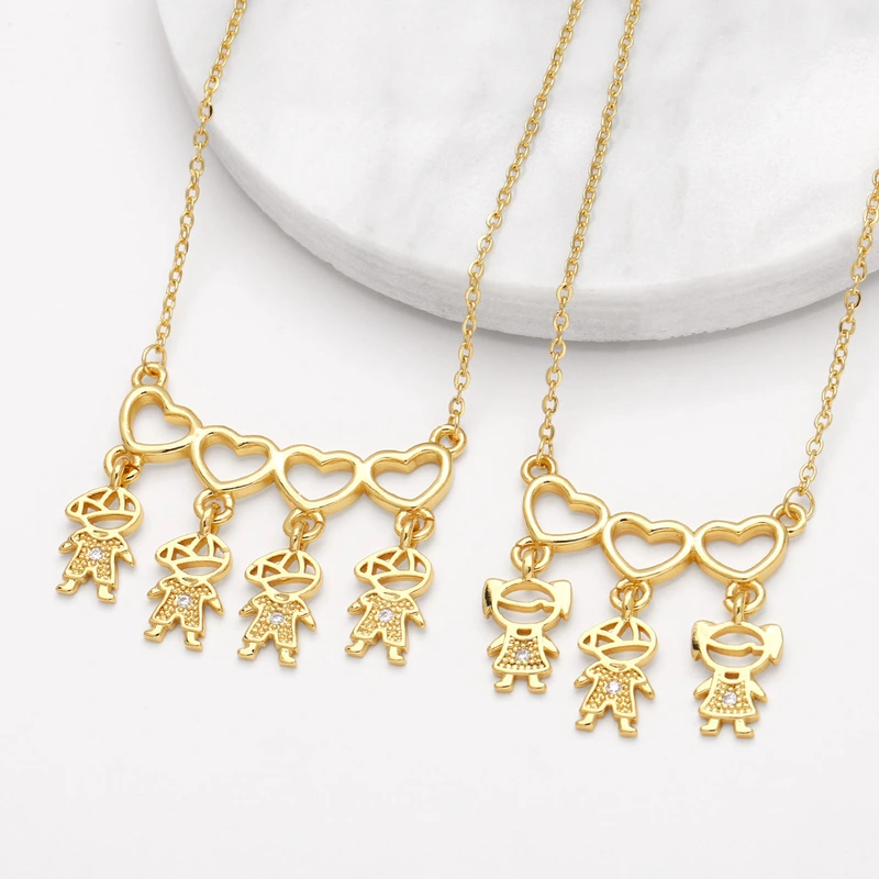Collar con colgante para niño y niña, chapado en oro, con incrustaciones de corazón y circonitas, cadena de clavícula NKA071