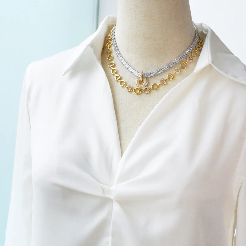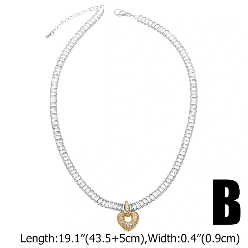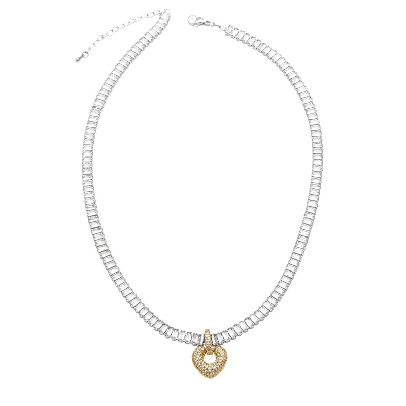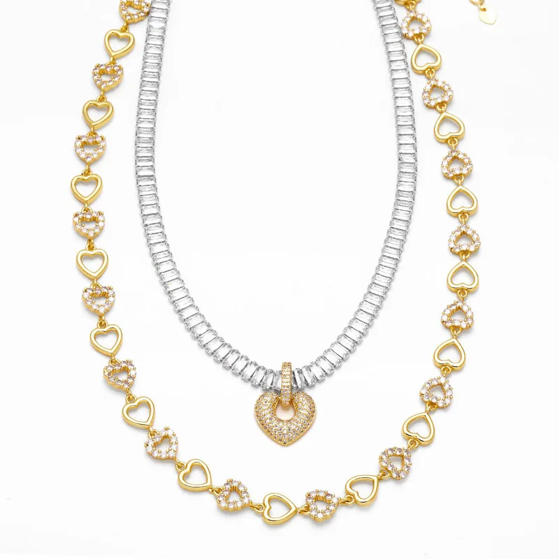 Collar con forma de corazón de alta calidad chapado en oro con incrustaciones de circonitas, cadena de clavícula de amor nkq18.