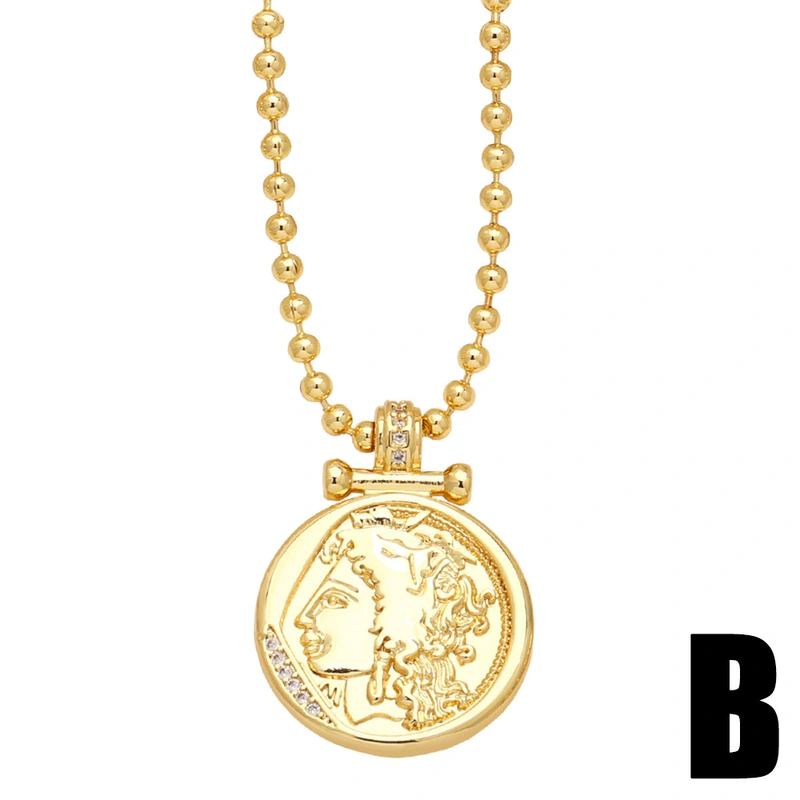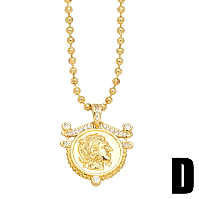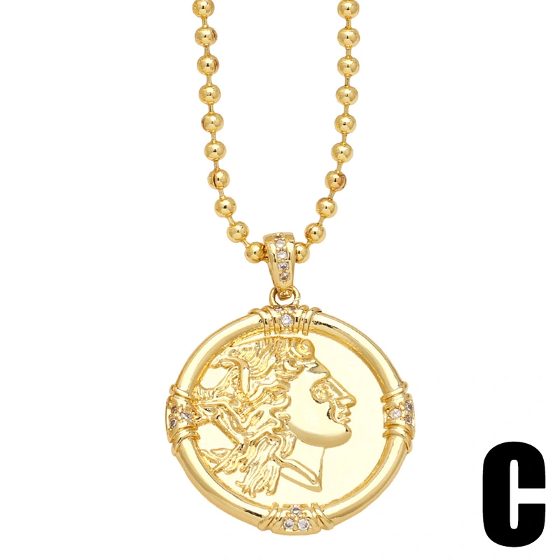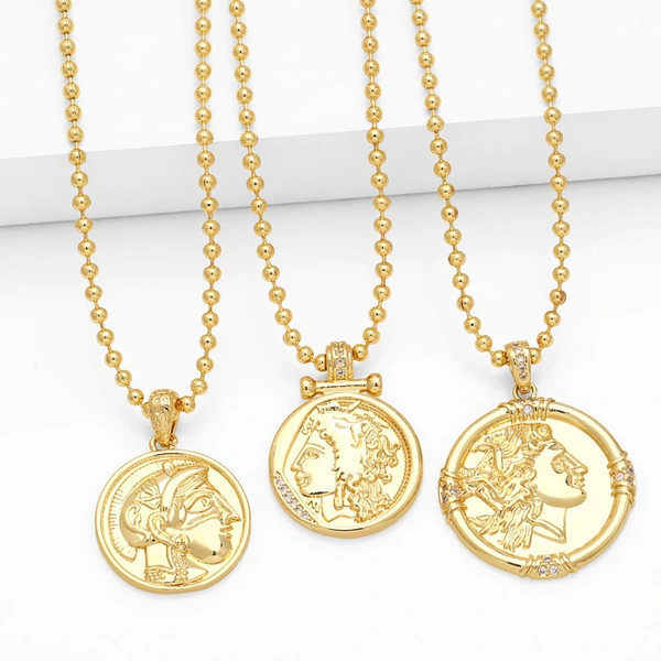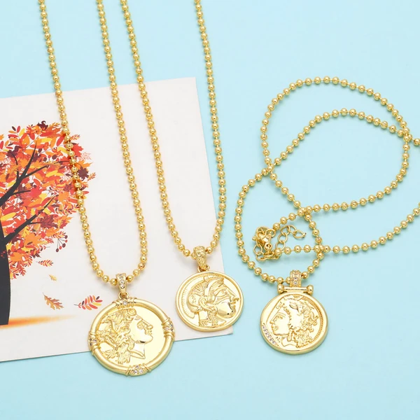 Collar con retrato de moneda de oro de 18 quilates, estilo retro, sencillo y elegante, con diamantes, para hombre y mujer, nkb073, en oferta, en Europa y América.