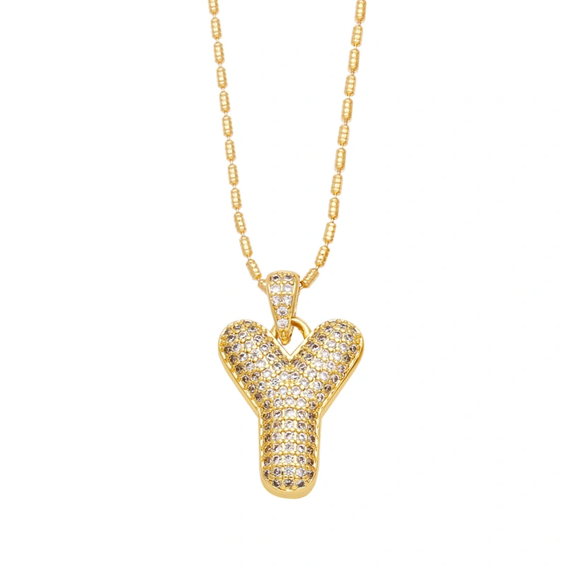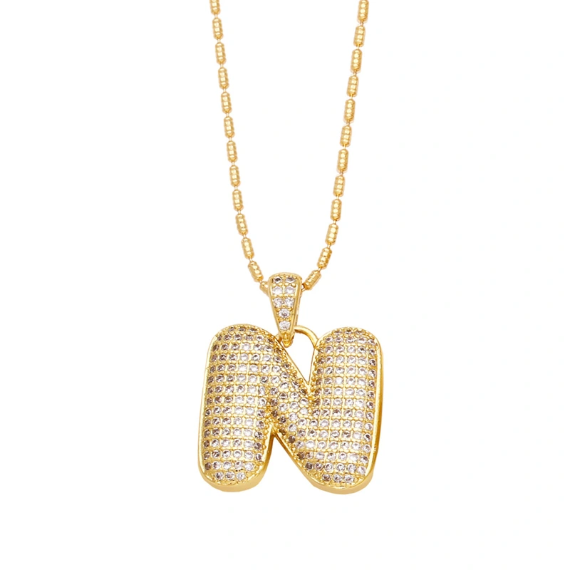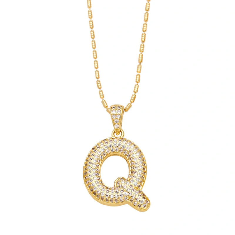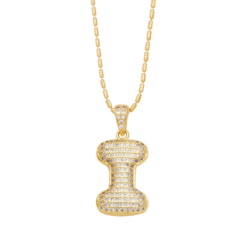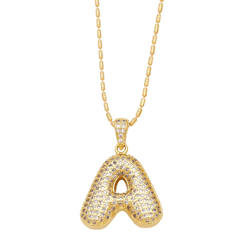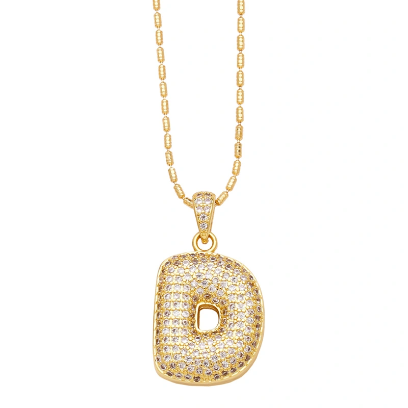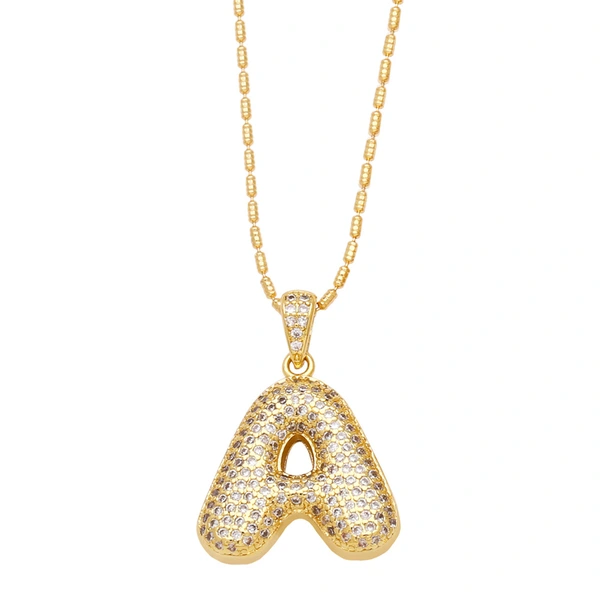 Collar de 26 letras en inglés para mujer, versátil, con incrustaciones de circonitas, chapado en oro, NKB838