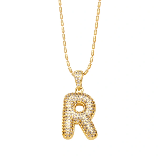 Collar con 26 letras en inglés para mujer, chapado en cobre y oro auténtico con incrustaciones de circonitas, cadena de clavícula, nky42