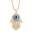 Collar de aleación europea y americana con la Mano de Fátima, con ojos azules turcos y diamantes, cadena para suéter (nkt61)