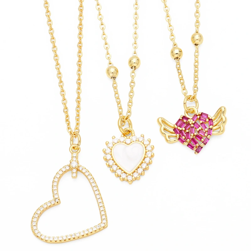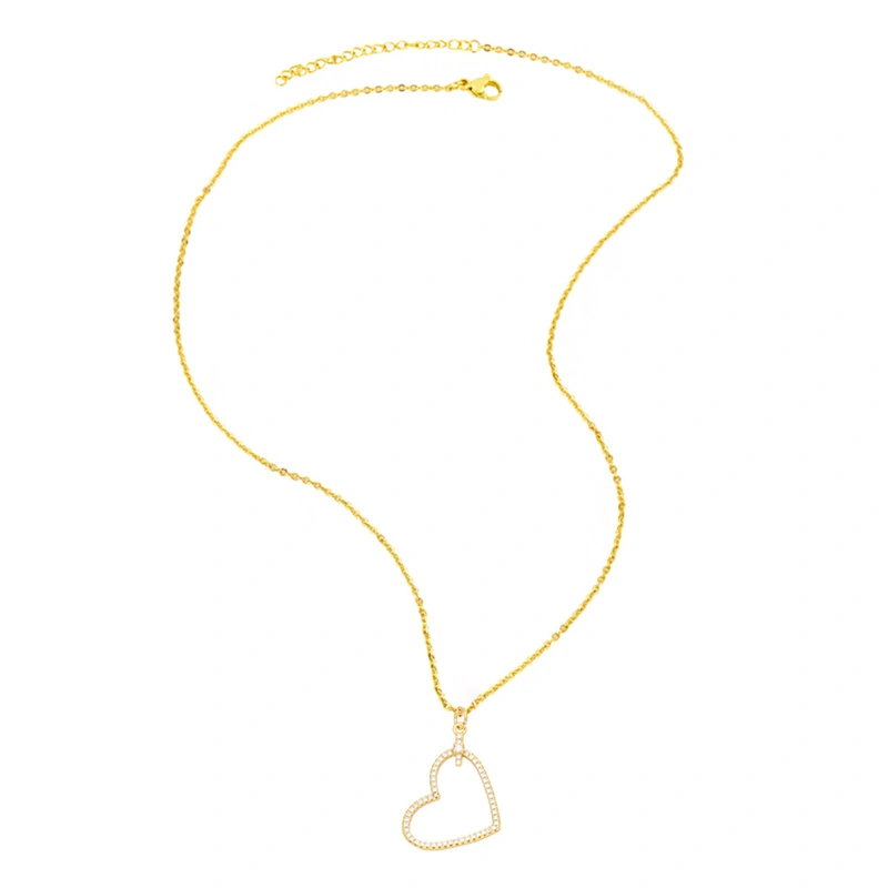 Collar de amor hueco con microincrustaciones de circonita de estilo europeo y americano para mujer, sencillo y versátil, con colgante en forma de corazón de melocotón, cadena de clavícula NKN15