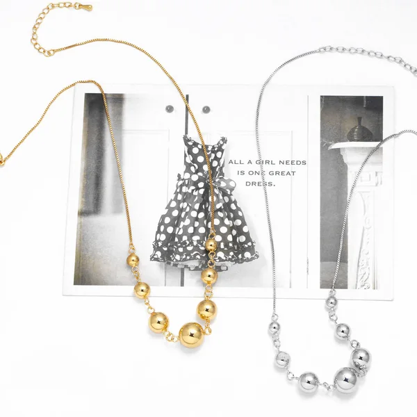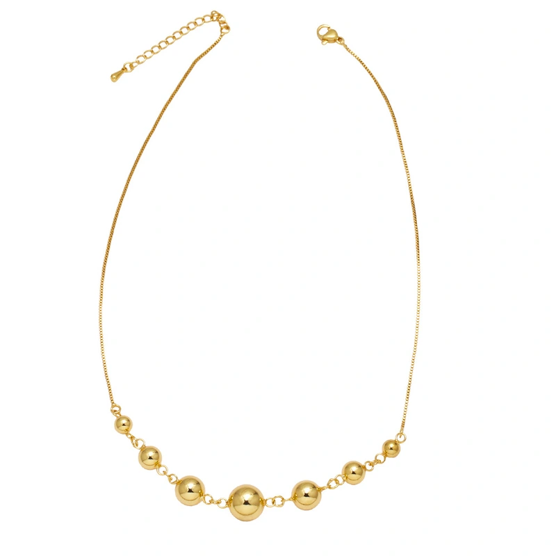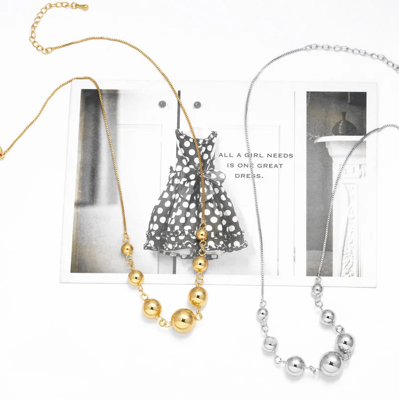 Collar de bolas europeo y americano para mujer, chapado en cobre, cadena de clavícula en oro de 18 quilates, NKS72.