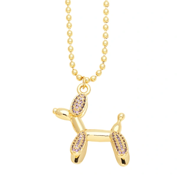 Collar de cachorro con incrustaciones de circonitas estilo hip-hop, joyería femenina de celebridades de internet, cadena de clavícula con forma de globo y perro, nkw28