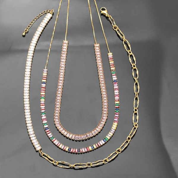 Collar de cadena con personalidad de circonita geométrica europea y americana, cadena de clavícula, gargantilla exagerada de moda, collar de cuello para mujer nkb314
