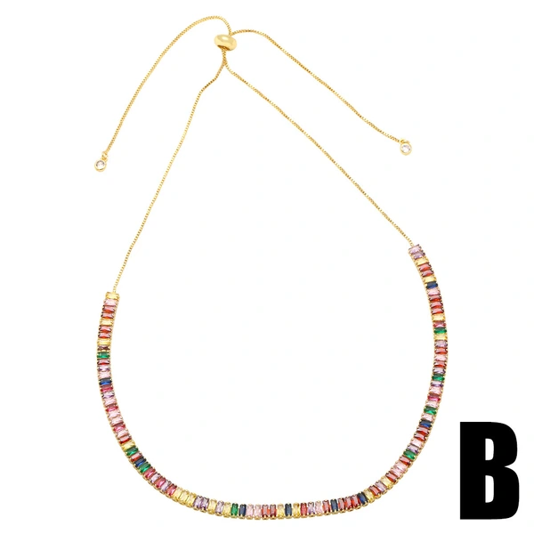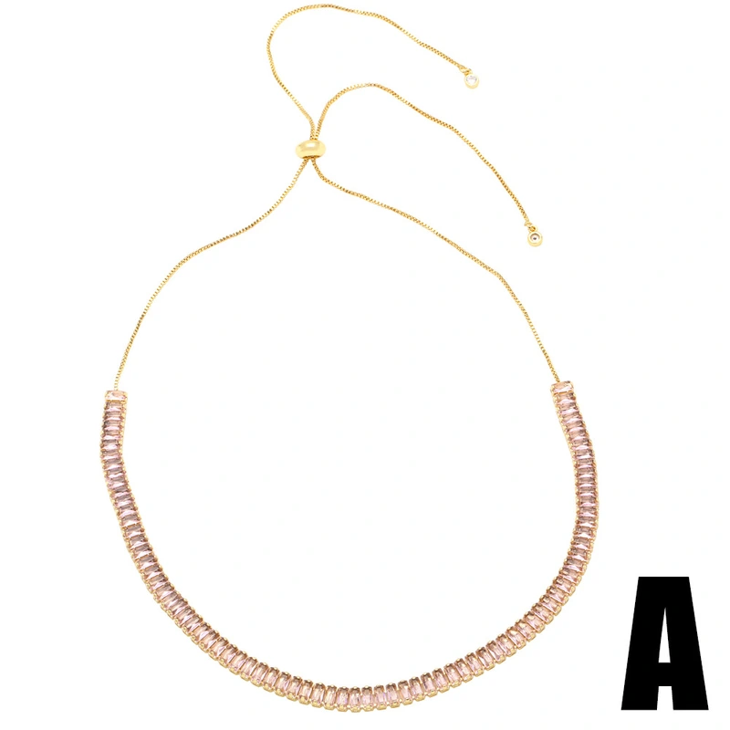 Collar con colgante de circonitas de colores, 26 letras en inglés, chapado en oro, cadena de clavícula, NKU83