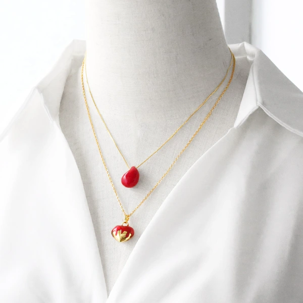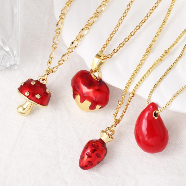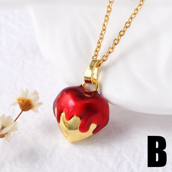 Collar de cadena de clavícula chapado en oro con gotas de agua de amor de alta calidad, color rojo, NKV39